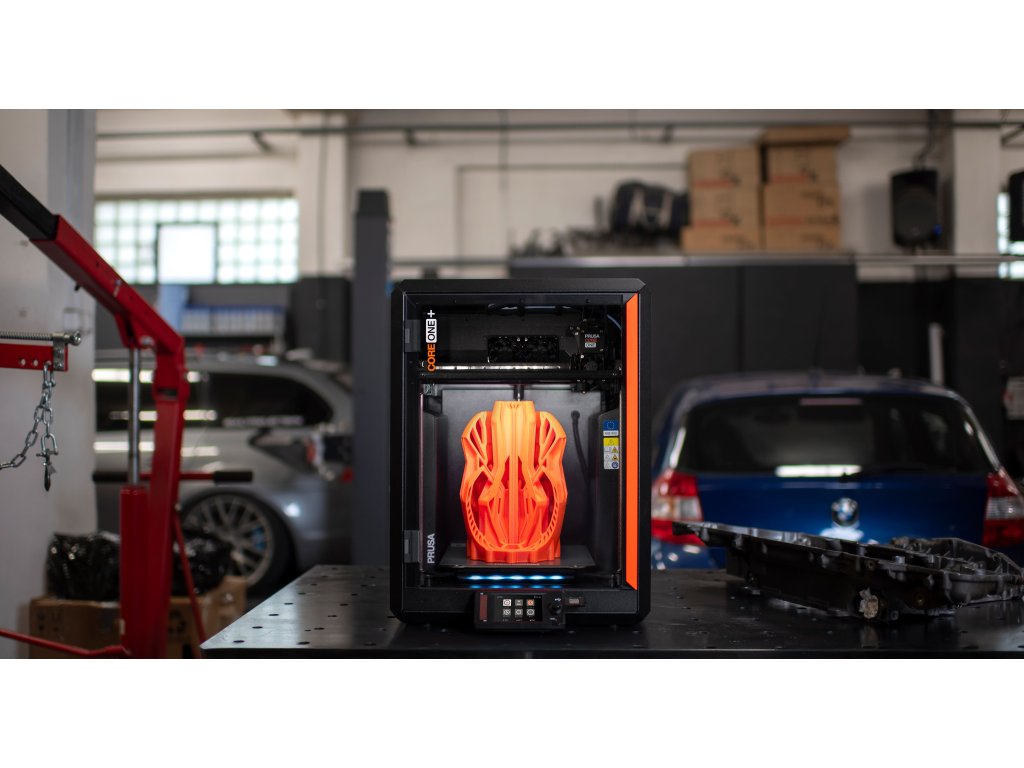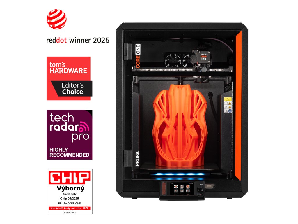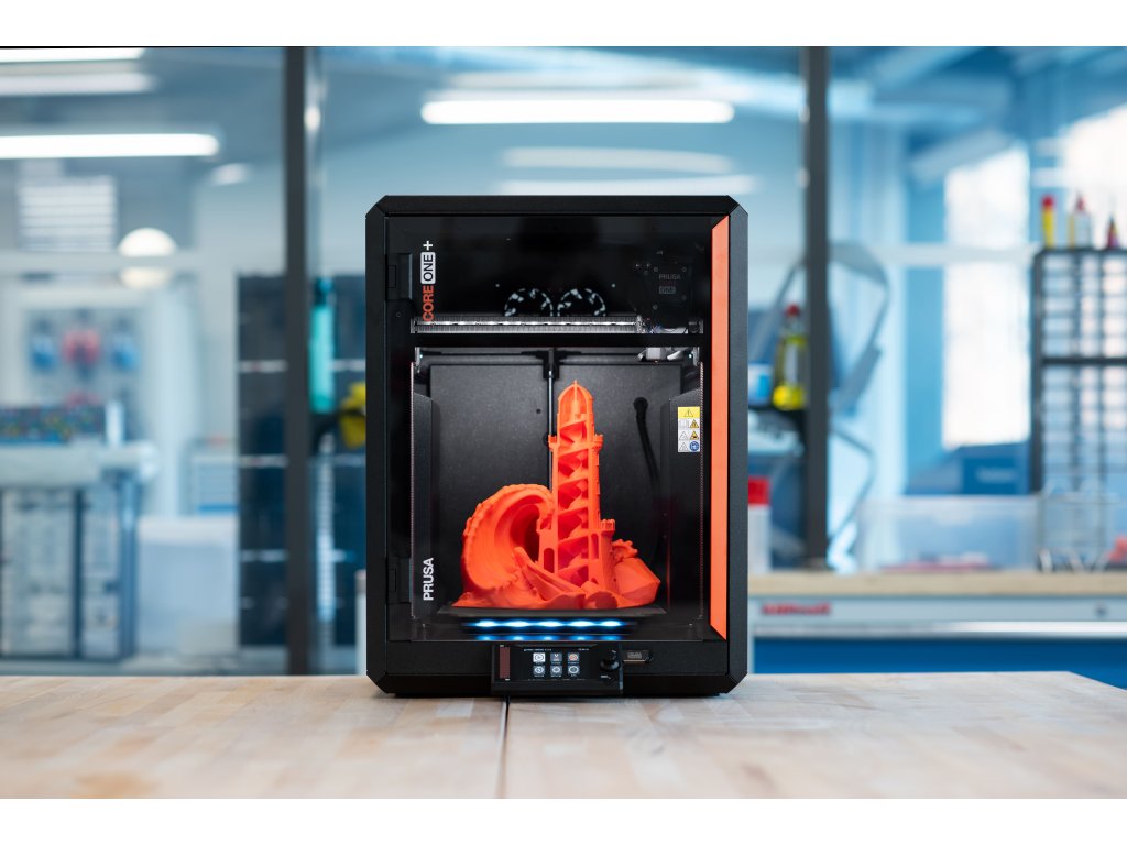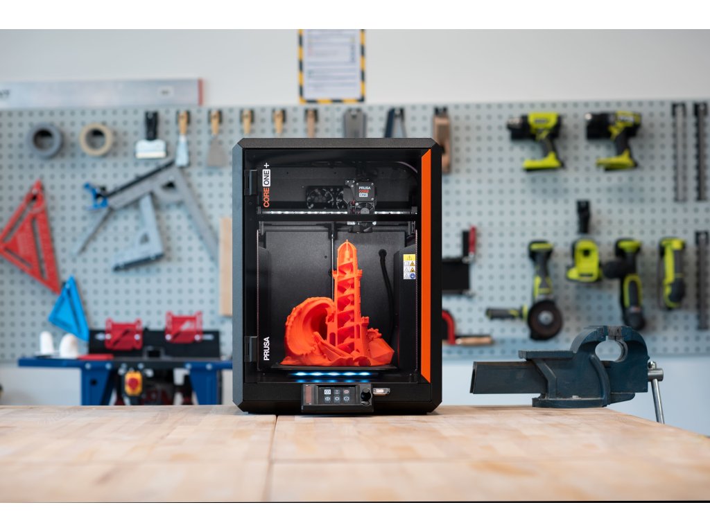 Prusa CORE One+ je další pracovitou 3D tiskárnou v léty ověřené tradici.Je navržena pro maximální životnost a vyrobena ze špičkových materiálů. Díky tomu je CORE One+ výjimečně spolehlivá a vyžaduje minimální údržbu. Její uzavřená tisková komora je vybavena aktivní regulací teploty a umí dosáhnout až 55 °C. Díky tomu CORE One zaručuje perfektní tiskovou kvalitu napříč materiály: od PLA a PETG (i se zavřenými dveřmi) až po náročnější filamenty jako ASA, PC nebo Nylon.