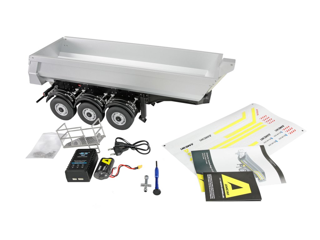 AMEWI RC 3-Axle Semi-Trailer with Metal Dump Body silver 1/14 RTR