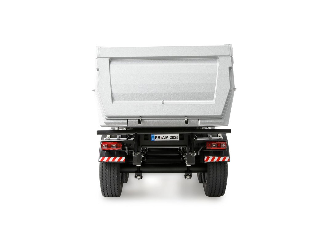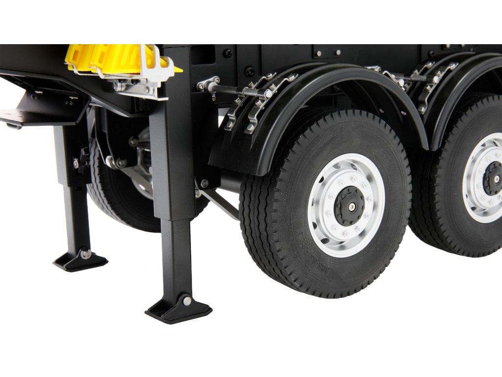 Návěs zaujme velkým množstvím detailů, robustním zpracováním a realistickými funkcemi. Vyklápěcí korba je vybavena elektronickým vřetenovým pohonem a nůžkovým mechanismem, který vytváří autentický sklápěcí pohyb až do 47 stupňového úhlu.Díky rámové konstrukci vyrobené výlučně z kovu, jakož i třem nápravám s listovým zavěšením je návěs vhodný i pro ty nejnáročnější úkoly.