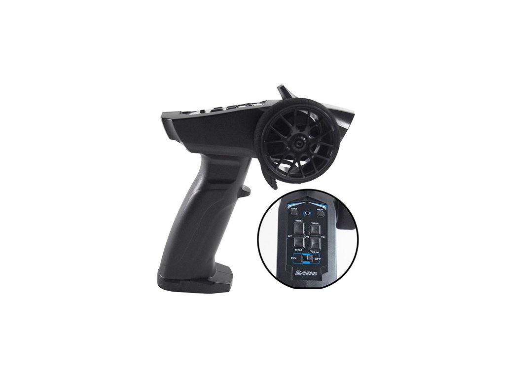 4. Volant ovládá zatáčení doprava/doleva. Spoušť ovládá jízdu dopředu (stisk k sobě), nebo dozadu (odtlačení od sebe). Brzda se aktivuje puštěním spouště do neutrálu.