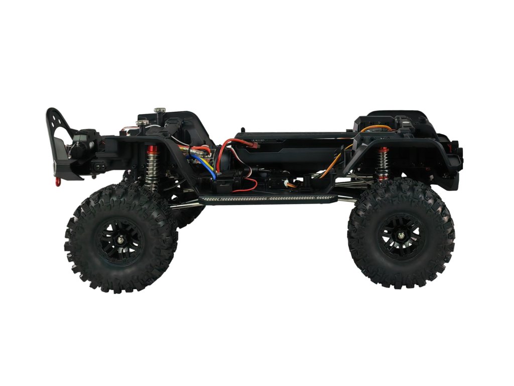 Jednosměrný regulátor Hobbywing WP-1060 60A s Moutainbreak zajišťuje přesné řízení a plnou kontrolu i v těch nejtěžších terénech. Díky speciálně navrženým tlumičům se bez problémů přenesete ať už přes kamenitý terén, hrbolaté cesty nebo i písečné kopce. Portálové nápravy s kovovými převody a hnacími hřídelemi CVD poskytují zvýšenou světlou výšku, zatímco dvoustupňová převodovka a individuální uzávěrky diferenciálů zajišťují optimální výkon při stoupání. Uzavřená skříňka přijímače chrání elektroniku modelu před stříkající vodou a nečistotami. Vpředu modelu se nachází ovladatelný naviják s vysokým točivým momentem, kterým můžete zachraňovat sebe nebo vytahovat jiné modely z nebezpečných situací.