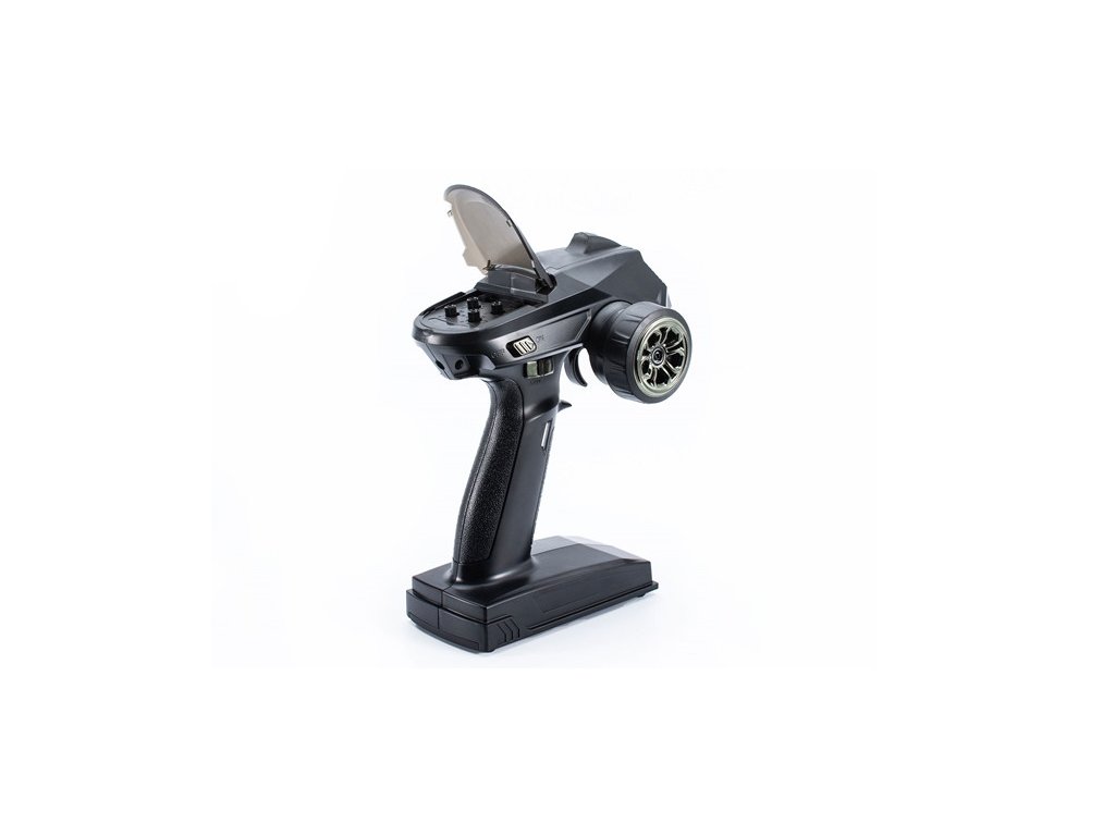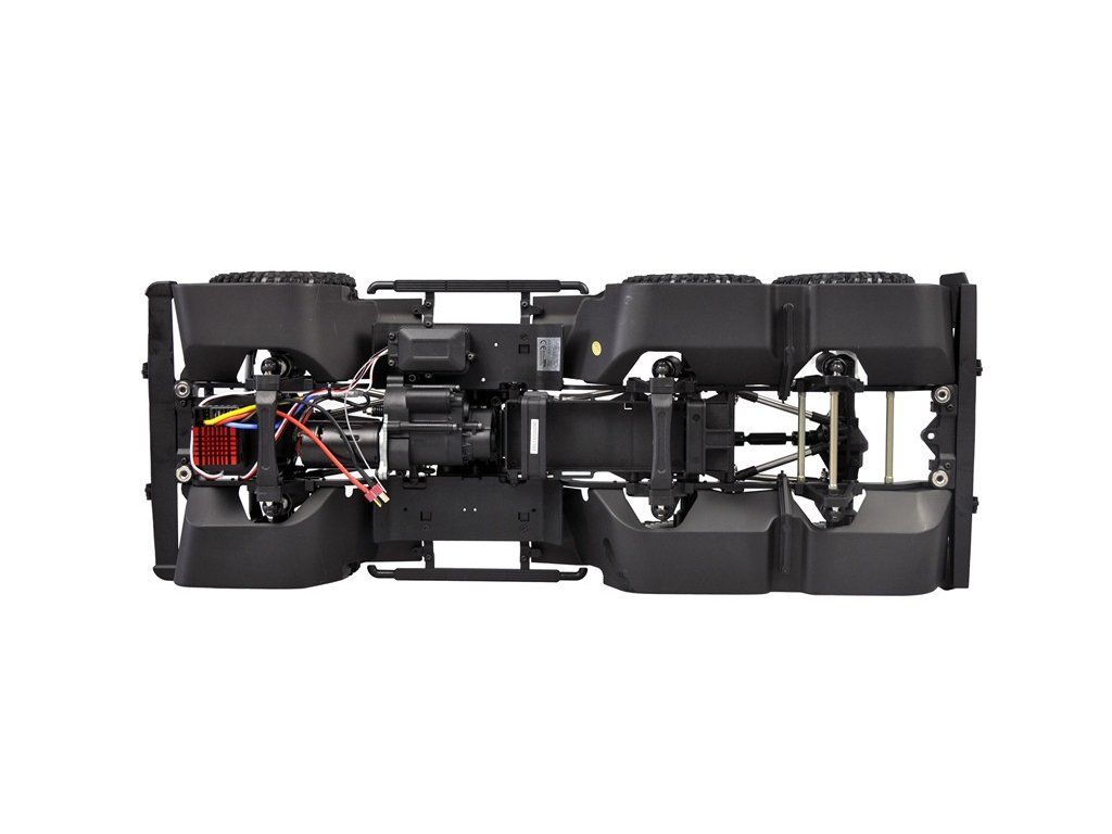 2,4GHz 4-kanálový diaľkový ovládač, ktorý je súčasťou balenia, ovláda všetky jazdné funkcie, ako aj 2-rýchlostnú prevodovku a pripravené LED osvetlenie. Servo riadenia už poskytuje 15 kg riadiacej sily. Celý model je chránený proti vode a odoláva tak všetkým vonkajším prevádzkovým podmienkam.