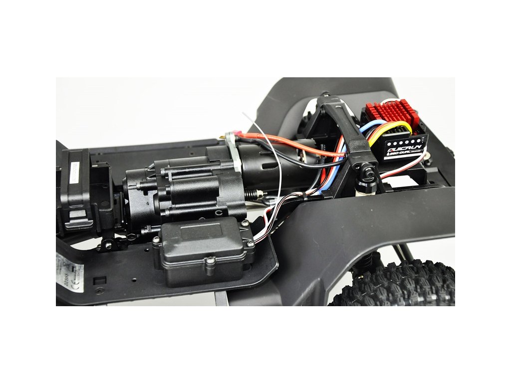 Model ponúka celý rad doplnkových funkcií. Patrí medzi ne 2-rýchlostná prevodovka, kovové hnacie hriadele, portálova náprava, uzamykateľné diferenciály, brushed motor 550 a ovládač Hobbywing WP880 vrátane programovacej karty.