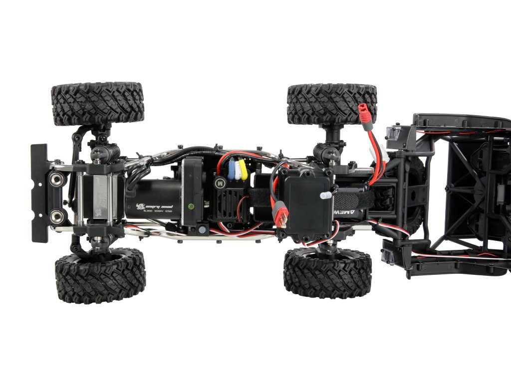 Model je poháněn výkonným střídavým motorem 3500KV v kombinaci s 45A ESC regulátorem což nabízí výkonný a zároveň citlivý zážitek z jízdy. Model je vybaven LED osvětlením vpředu i vzadu a tak jízdu za horších světelných podmínek. Hliníková karoserie, olejové tlumiče a měkké pryžové pneumatiky zaručují maximální stabilitu a spolehlivou trakci i v náročném terénu.