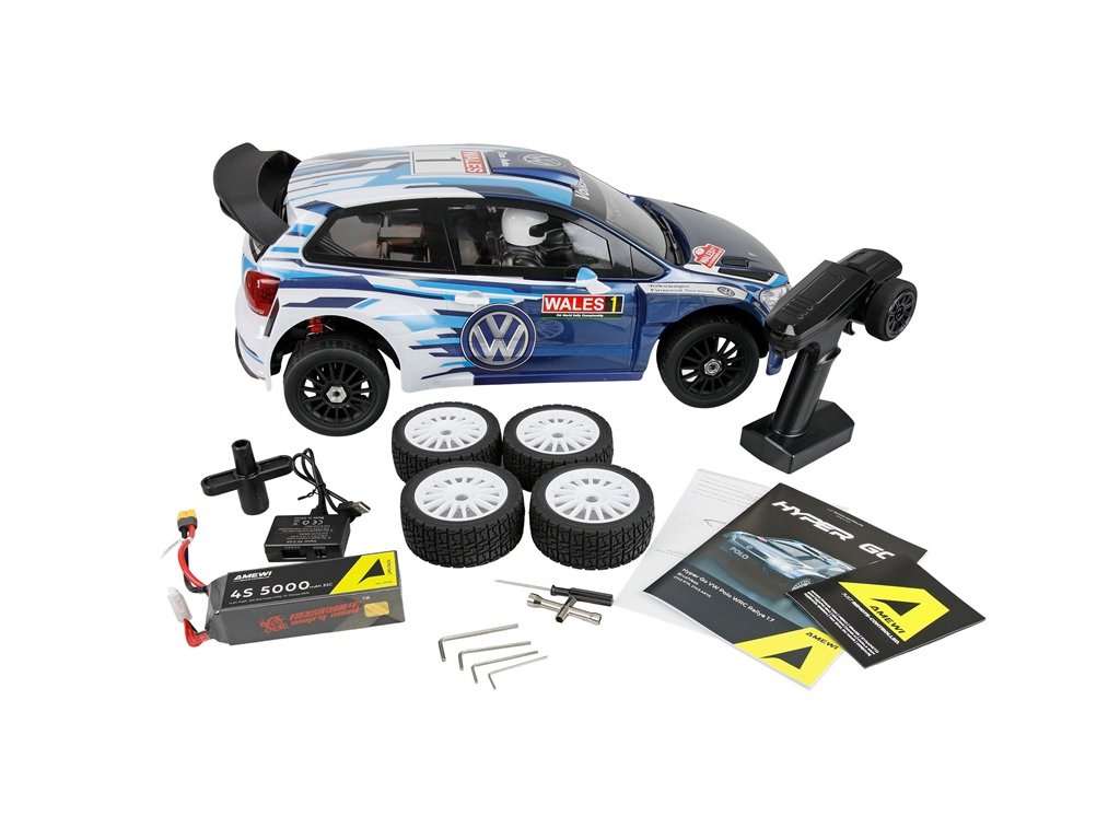 Hyper Go VW Polo WRC Rally se dodává jako RTR sada včetně dálkového ovládání, 4S LiPo baterie s kapacitou 5000 mAh, USB nabíječky a dvou sad pneumatik pro použití na silnicích i v rally. Nastavitelný prostor pro baterie umožňuje použití baterií různých velikostí, zatímco vodotěsná skříňka přijímače chrání elektroniku před vlhkostí. Hliníkové olejové tlumiče, kuličková ložiska a CVD hnací hřídele zajišťují vynikající ovladatelnost a odolnost. 35 kg servo řízení s kovovou převodovkou a 2,4 GHz dálkové ovládání s dvojitou rychlostí a funkcí zpětného chodu pro plyn a řízení umožňují přesné ovládání v každé jízdní situaci. Hyper Go VW Polo WRC Rallye kombinuje vysokou stabilitu, výkon a pozornost k detailům ve vysoce kvalitním modelovém autě, které je určeno pro náročnou jízdu v rallye na různých površích.