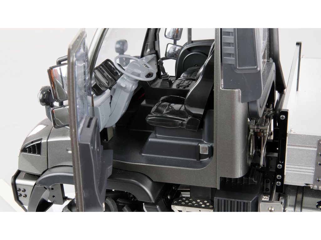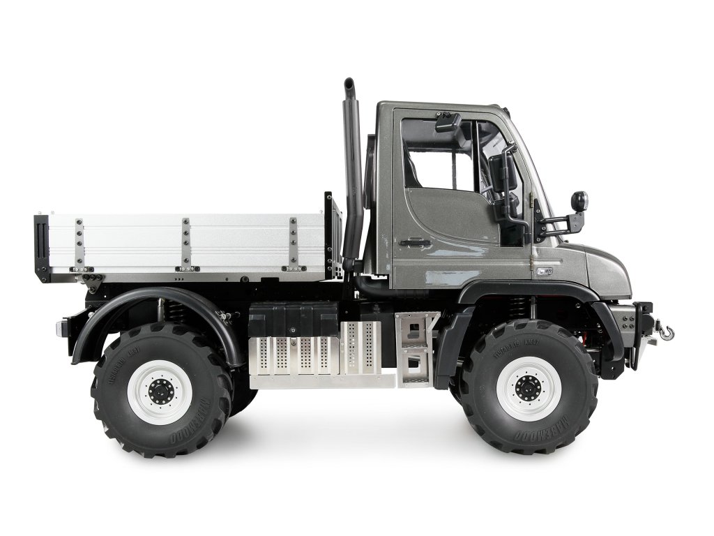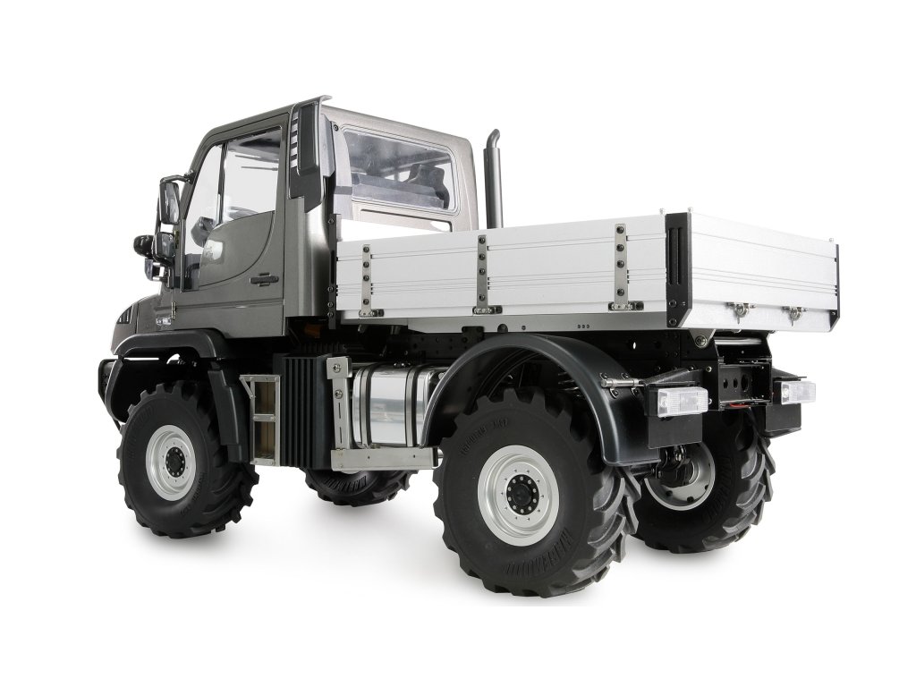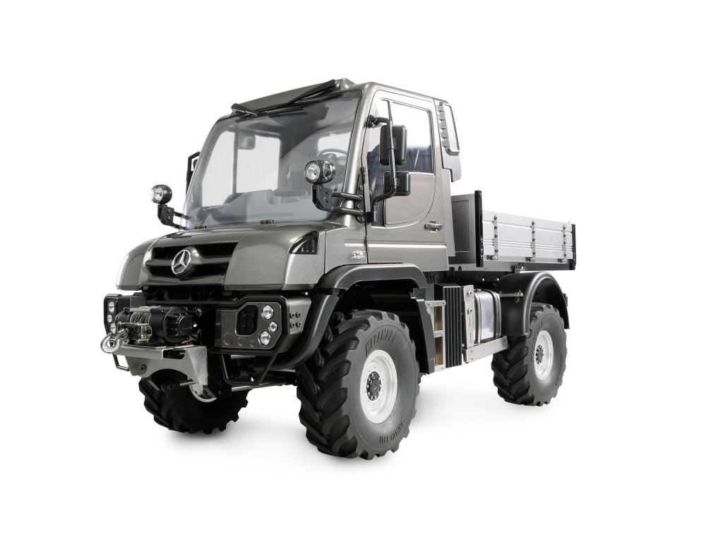 Oficiálně licencovaná replika známého Unimogu, který se používá například při sečení nebo v lesích. Na přední masce je namontován funkční lanový naviják, který lze ovládat pomocí dodávaného 10-kanálového dálkového ovladače.