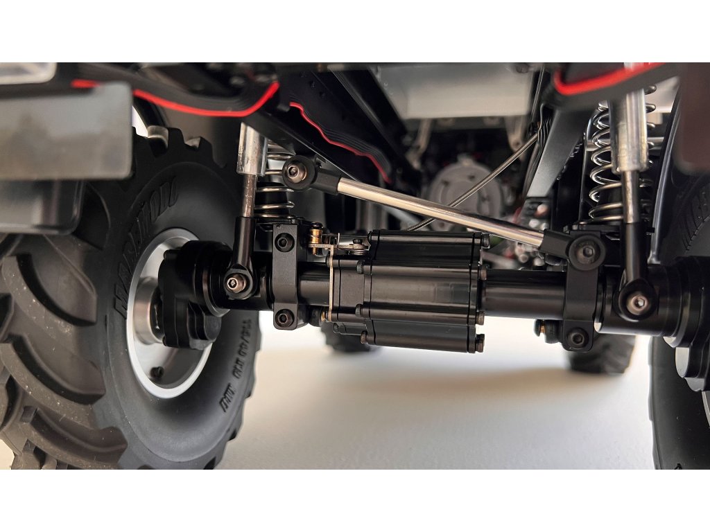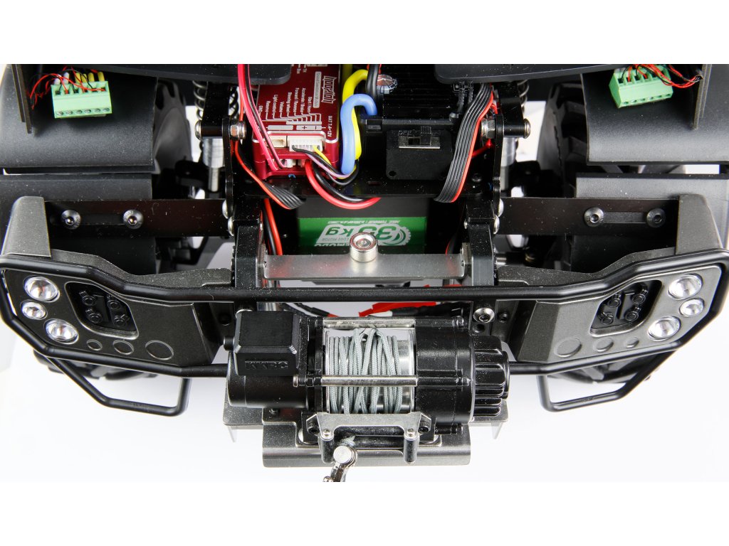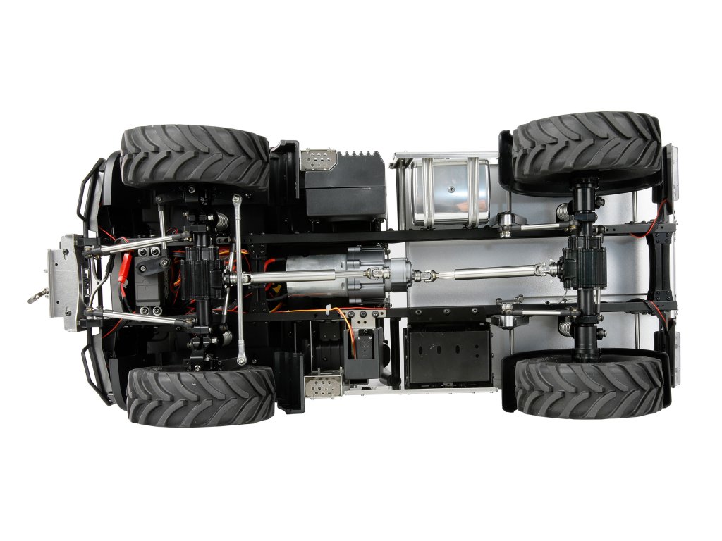 Konstrukce modelu je z velké části z kovu, hmotnost téměř šest kilogramů, přepínatelná 2-stupňová převodovka, portálové nápravy a uzamykatelné uzávěrky diferenciálů. Měkké a profilované gumové pneumatiky, stálý pohon všech kol a čtyři citlivé tlumiče, které se přizpůsobí jakémukoli povrchu, zajišťují nejlepší možnou přilnavost a maximální trakci. Všechny komponenty pohonu jako kardanové hřídele, diferenciály, portálová převodovka, hlavní převodovka a kuželová soukolí jsou vyrobeny z kovu pro větší odolnost. Standardní servo řízení o síle 35 kg a kovovými převody zajišťuje směrovou stabilitu a dostatečný výkon. Miniserva o síle 1,5 kg slouží k ovládání uzávěrek diferenciálů a řazení 2-stupňové převodovky.