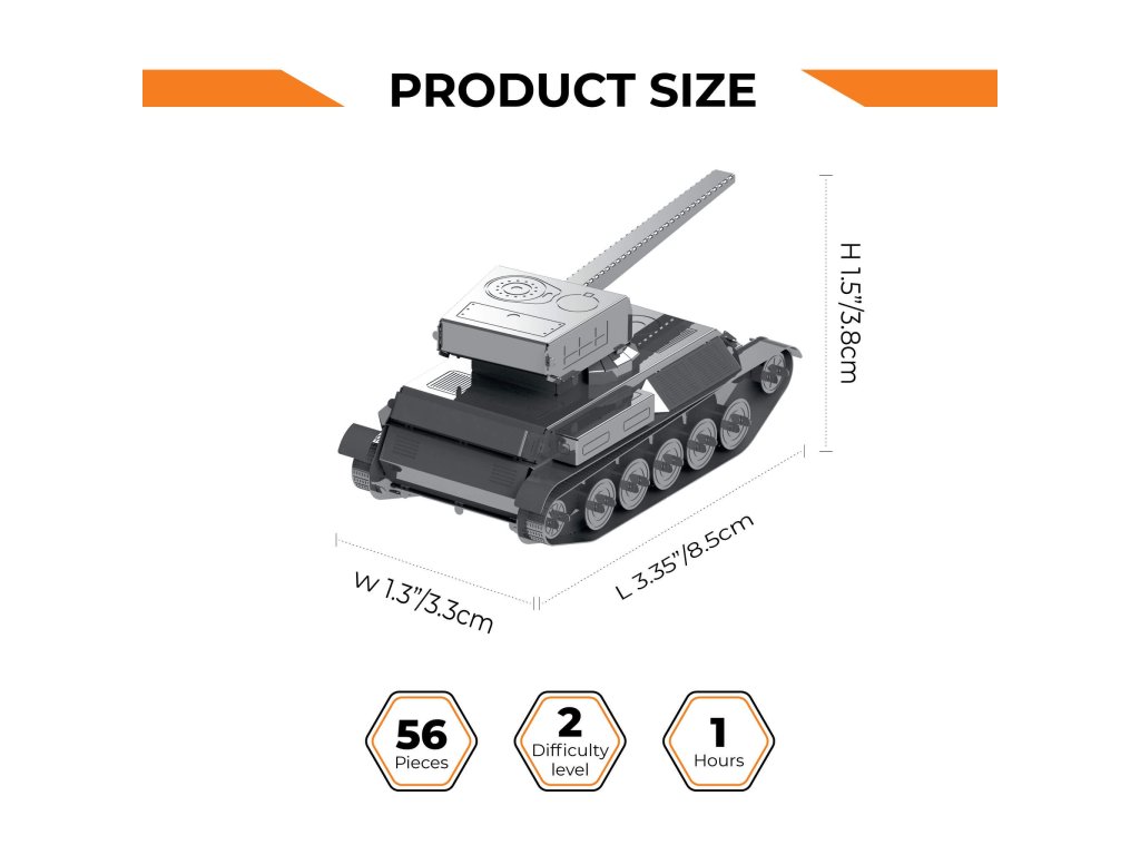 Stavebnice modelu z kovu. Vyrobeno z kvalitního leštěného ocelového plechu laserovým vypalováním a přesným obráběním. Vhodné pro mírně pokročilé a starší děti.