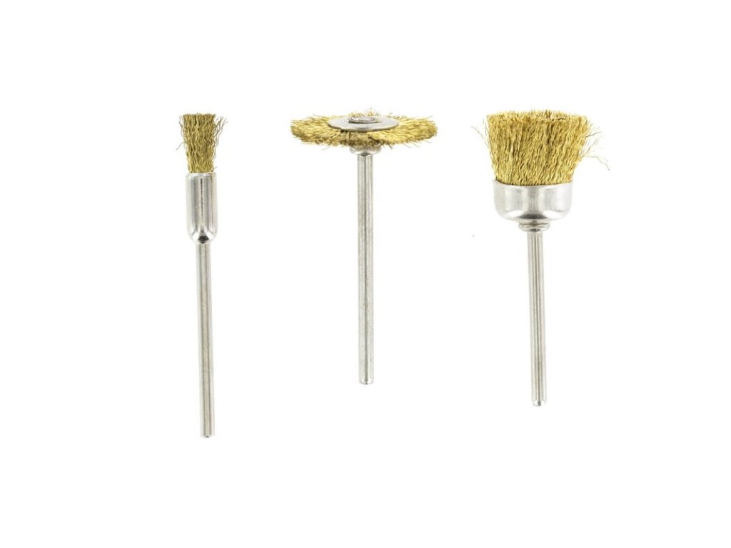 Sada mosazných kotoučů určených k jemnému vyčištění kovového povrchu od rzi, staré barvy nebo zdrsnění povrchu před pájením nebo svařováním.