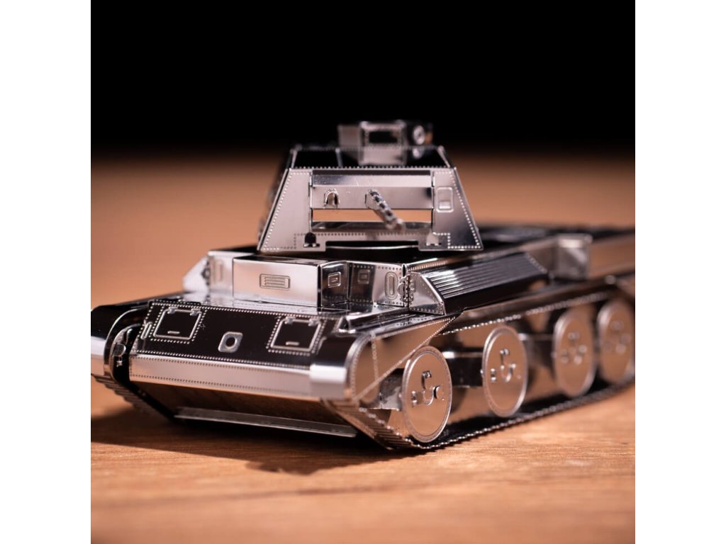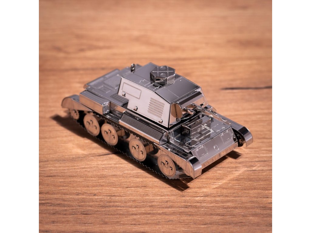 Stavebnice modelu z kovu. Vyrobeno z kvalitního leštěného ocelového plechu laserovým vypalováním a přesným obráběním. Vhodné pro mírně pokročilé a starší děti.