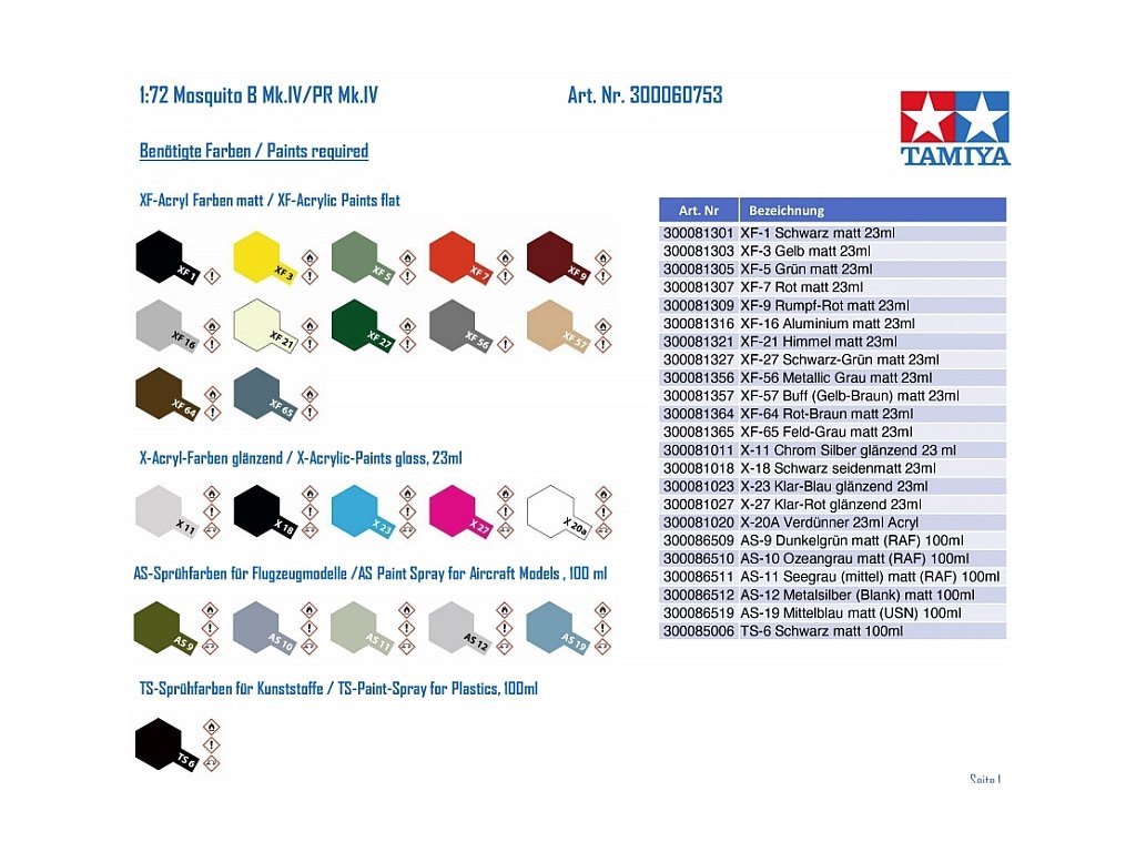 V návodu má Tamiya napsané méně přesné odstíny kamuflážních barev. V sortimentu Tamiya jsou přesné odstíny RAF kamufláže tyto: