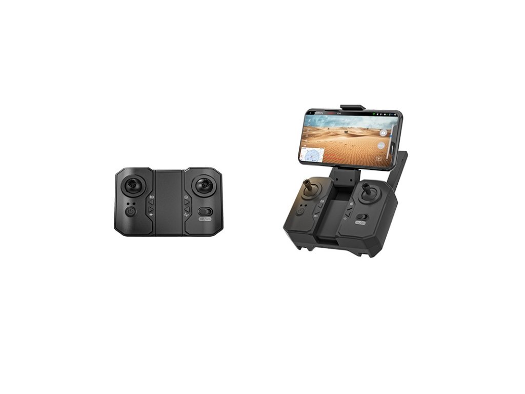 Dron se ovládá pomocí vysílače, který je součástí balení. Integrovaný stojan na vysílači slouží k pevnému uchycení vašeho mobilu a skvěle poslouží ke sledování přímého přenosu z kamery dronu. Kameru můžete nastavit do libovolné polohy pomocí vysílače nebo mobilu.