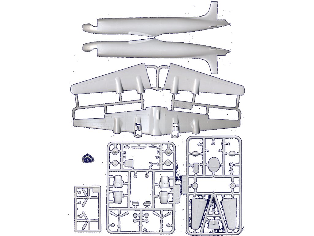 Stavebnice plastikového modelu amerického dopravního letadla poháněného pístovým motorem z druhé poloviny 40. let.