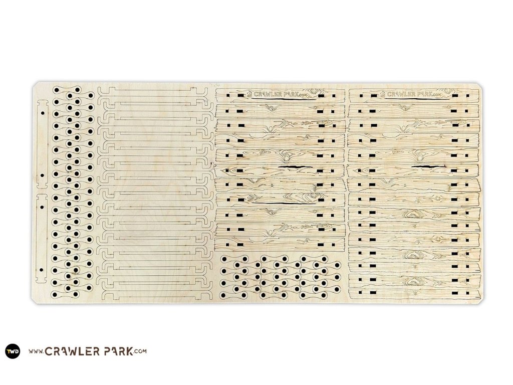 Stavebnice překážky určená pro modely expedičních a crawler aut na dálkové ovládání. Je vyrobena 100% z laserem vyřezávaných dřevěných dílů, které vyndáte z plátu pouze mírným zatlačením. Ke stavbě překážky není nutné lepidlo a všechny díly do sebe snadno zapadají. Návod na stavbu je vyobrazen na plátě prostřednictvím QR kódu, který jen jednoduše před zahájením stavby naskenujete.