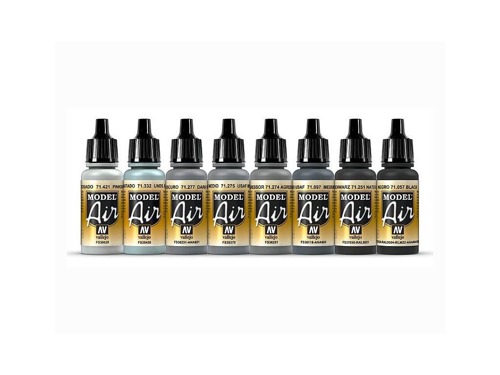 Set akrylových farieb. Farby sú pripravené na striekanie. Set je primárne určený pre modely amerických lietadiel z obdobia od konca 2. sv. vojny po súčasnosť.