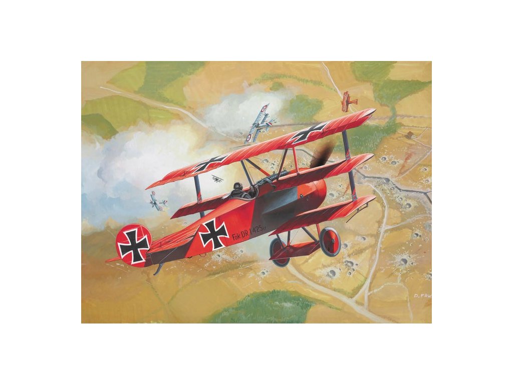 Stavebnice plastikového modelu německého stíhacího letadla z 1. světové války známého jako Rudý baron. Součástí stavebnice jsou také základní odstíny barev, lepidlo a štětec.