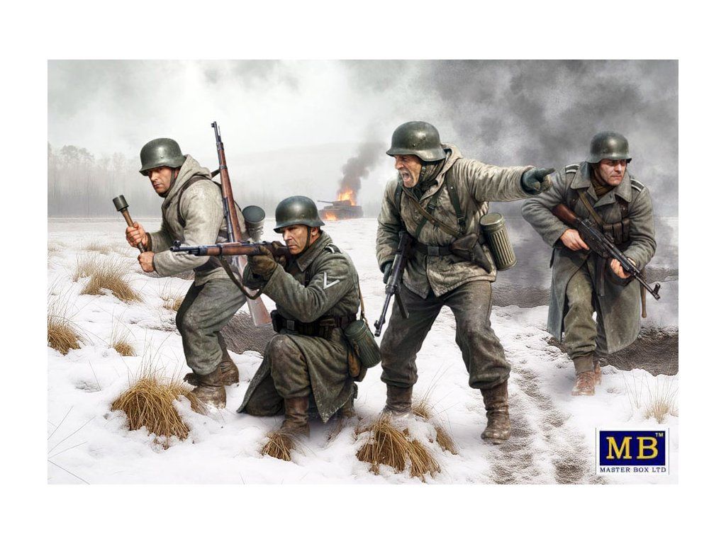Stavebnice plastikového modelu sady figurek německé pěchoty z Obléhání Bastogne v roce 1944.