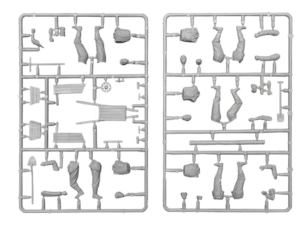 Stavebnice plastikového modelu sady figurek pracujících německých vojáků ze 2. světové války.