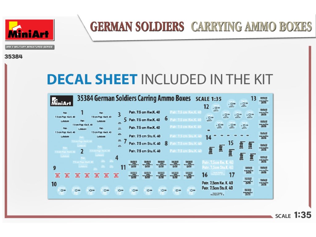 Stavebnice plastikového modelu sady figurek německých vojáků vyobrazených během nošení munice.