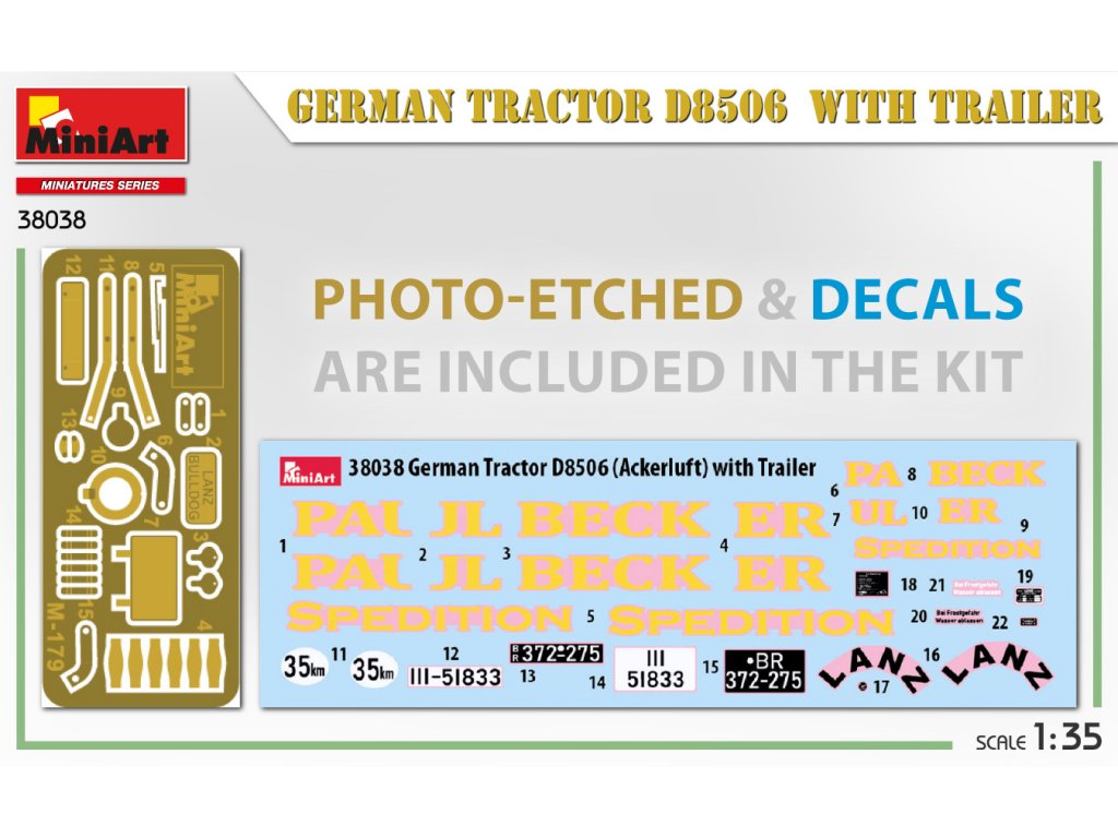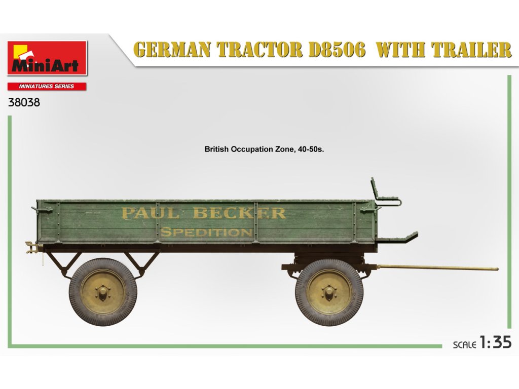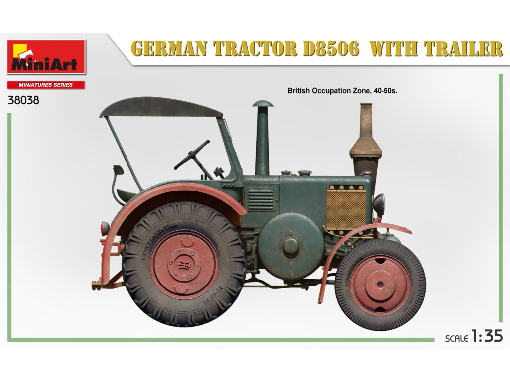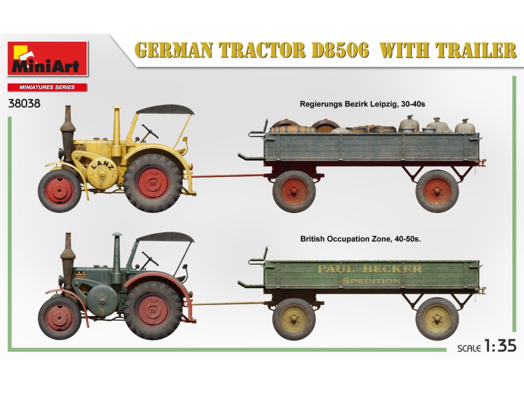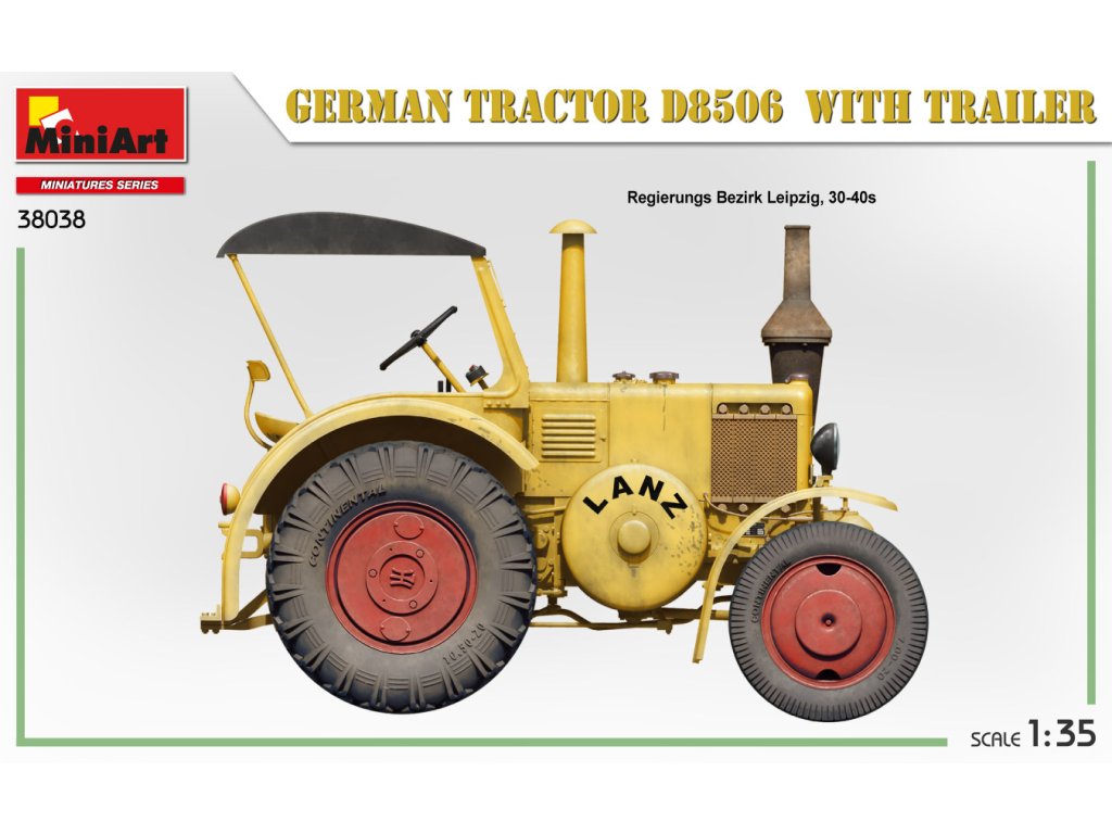 Stavebnice plastikového modelu německého traktoru s návěsem ze 30. let minulého století.