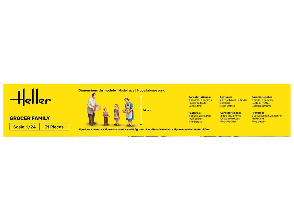 Stavebnice plastikového modelu sady figurek civilistů – prodejců potravin. Stavebnice obsahuje díly pro stavbu čtyř figurek, základní odstíny barev, lepidlo a štětec. Díly pro stavbu auta nejsou součástí balení.