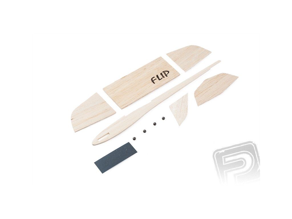 Malé celobalzové házedlo s velmi jednoduchou stavbou, ideální jako úplně první model, který postavíte během několika desítek minut. Díky přesným CNC vyřezávaným dílům nebudete potřebovat žádné nástroje, jen acetonové lepidlo (Kanagem, UHU-hart apod.) a špendlíky. Vzhledem k kapesním rozměrům si s Flipem skvěle zalétáte kdekoli, třeba na nedělní odpolední vycházce do parku.