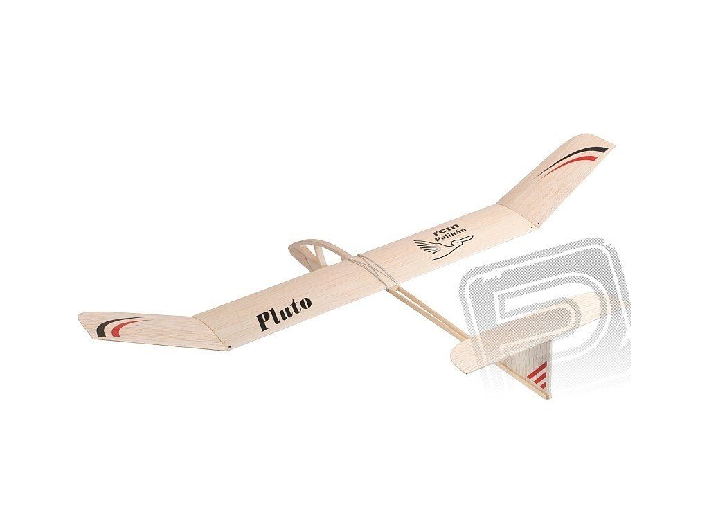 Velké celobalzové házedlo s předlepenými díly. Velké celobalzové házedlo s výbornou kluzností a velmi jednoduchou stavbou. Je ideální jako úplně první model, který postavíte během několika desítek minut. Díky přesným CNC vyřezávaným dílům, částečně slepenému trupu a křídlu s profilem zakřivené desky s předlepenými profilovými žebry nebudete potřebovat žádné nástroje, jen acetonové lepidlo (Kanagem, L-510, UHU-hart apod.) a špendlíky. Křídlo je k trupu upevněno gumovými oky, takže Pluto je i přes větší rozpětí křídla skladné; klidně si ho můžete vzít do auta na nedělní výlet nebo dovolenou přibalit i několik kusů.