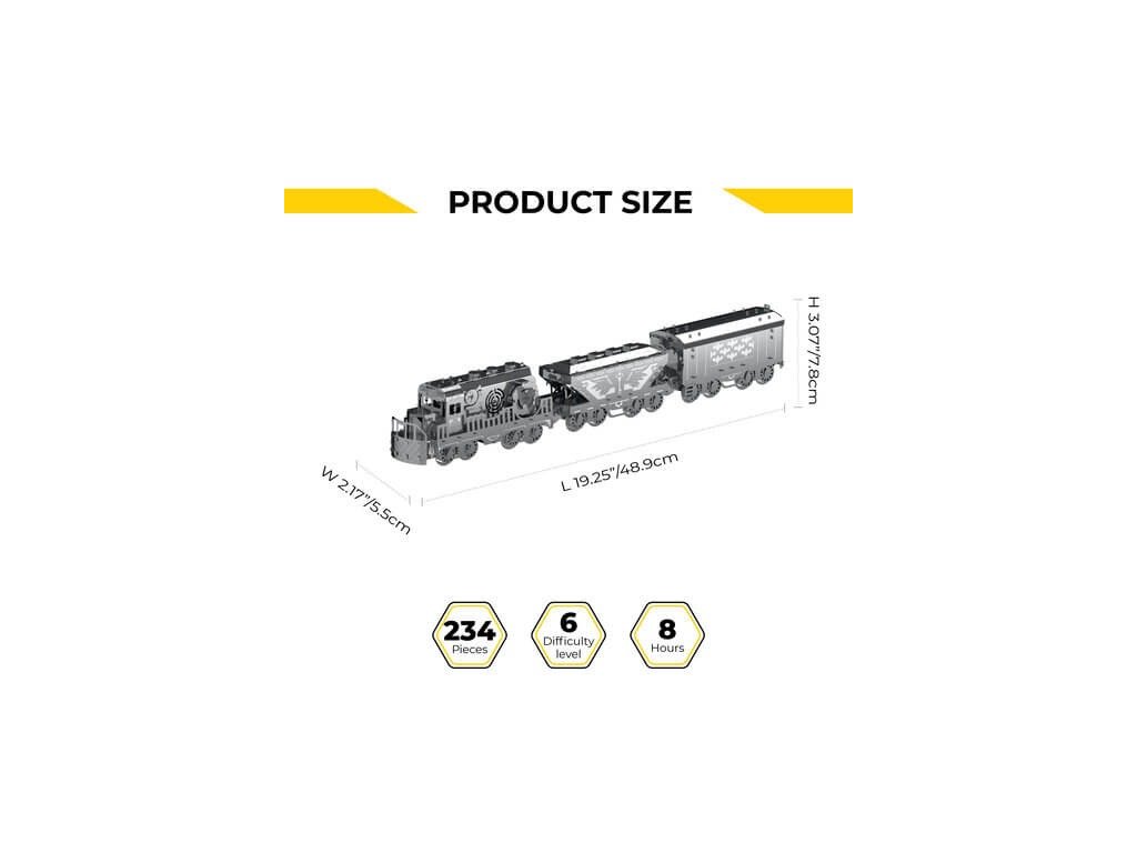 Stavebnice modelu z kovu. Vyrobeno z kvalitního leštěného ocelového plechu laserovým vypalováním a přesným obráběním. Vhodné pro mírně pokročilé a starší děti. Stavebnice obsahuje vyštipovací kleště, pilník, rukavice, čistící hadřík a sběratelské předměty jako odznak a nálepky.