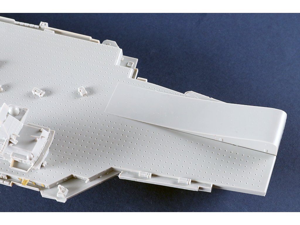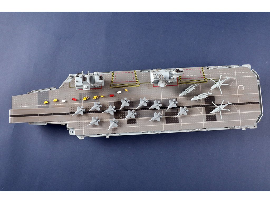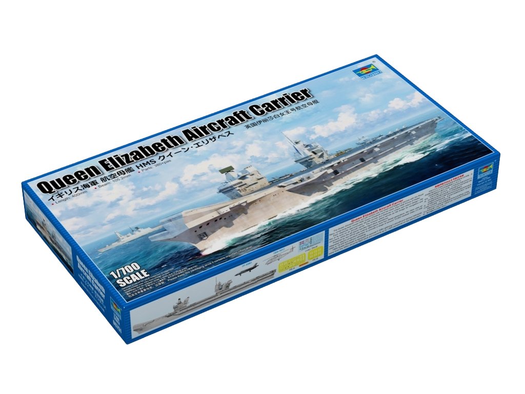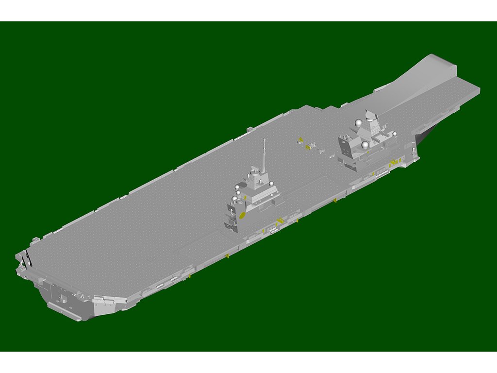 Stavebnice plastikového modelu letadlové lodi ve službách Britského královského námořnictva ze současnosti.