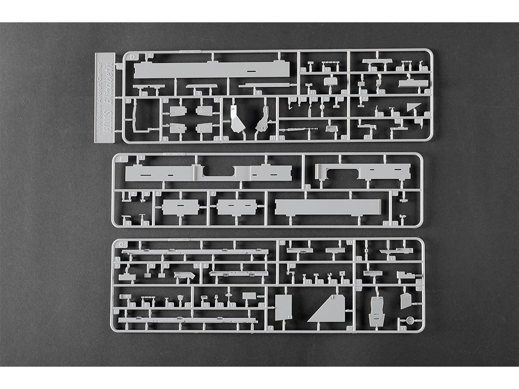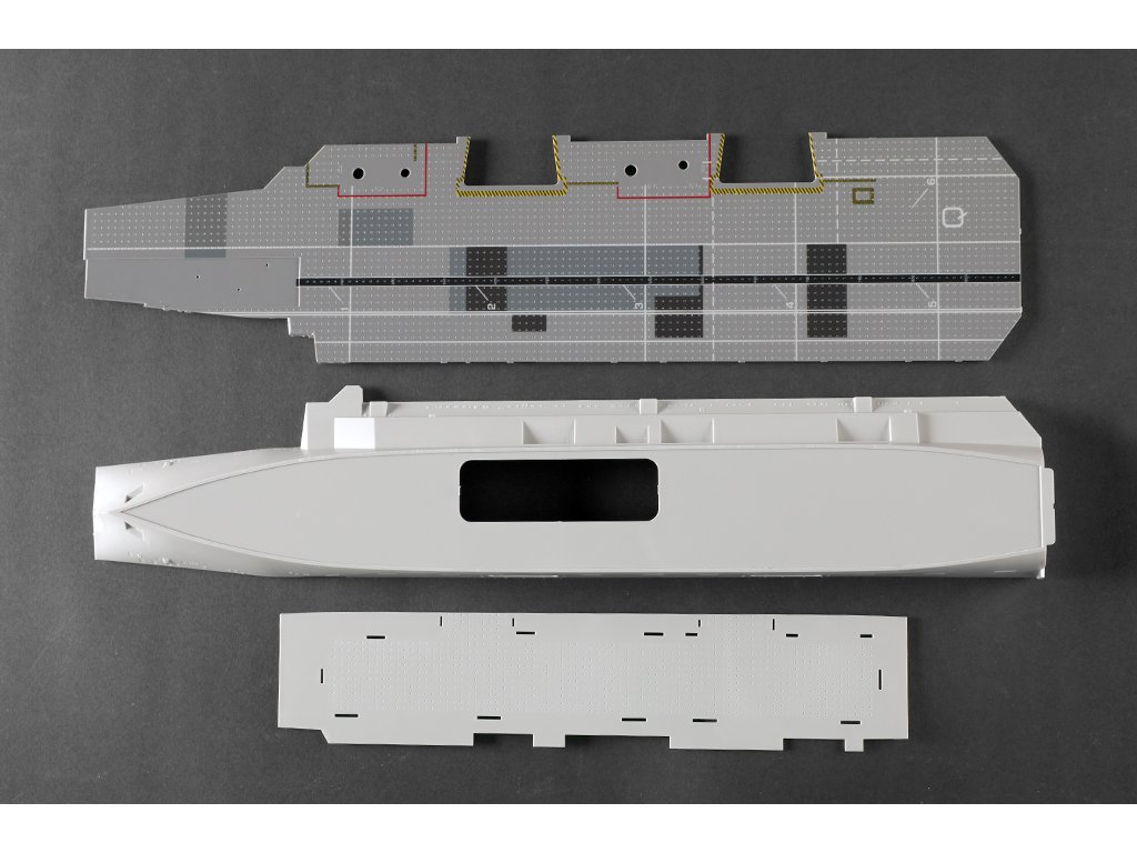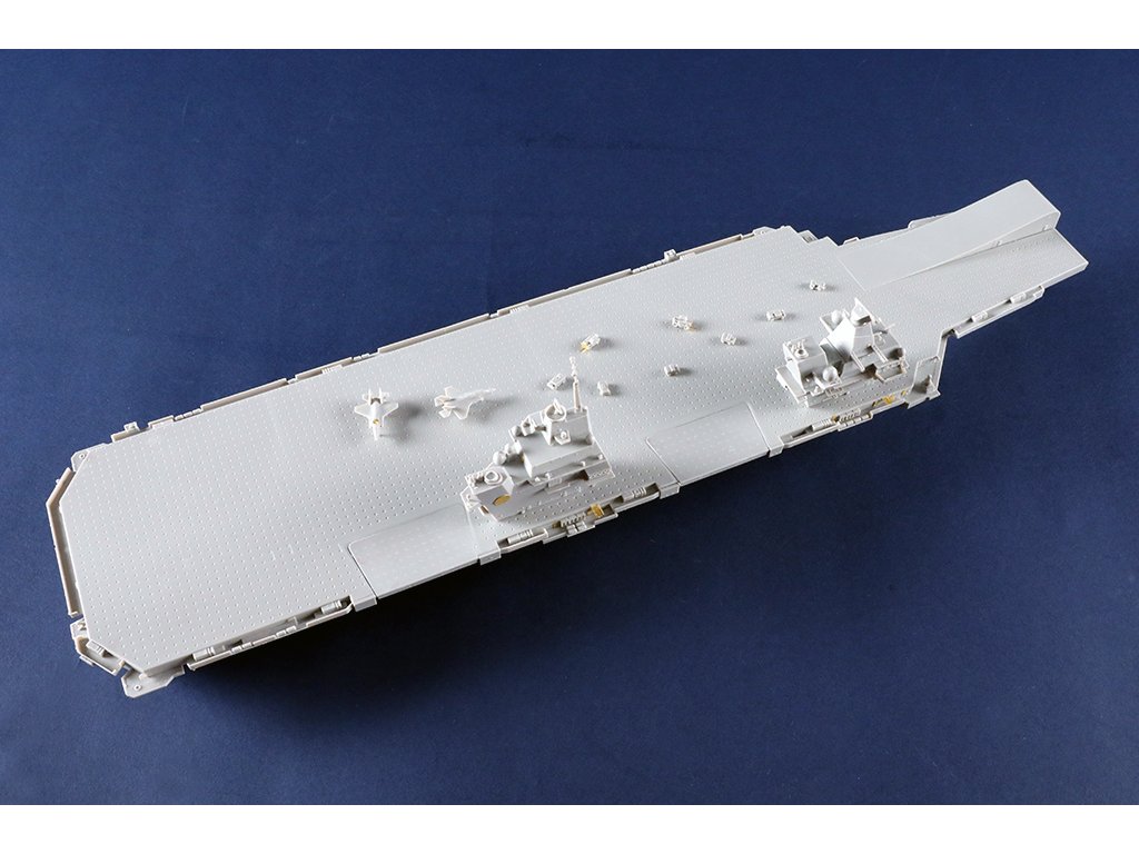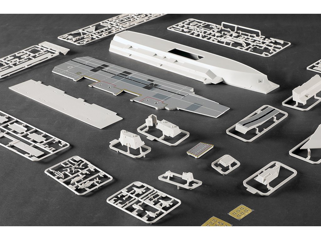 Stavebnice plastikového modelu letadlové lodi ve službách Britského královského námořnictva ze současnosti.