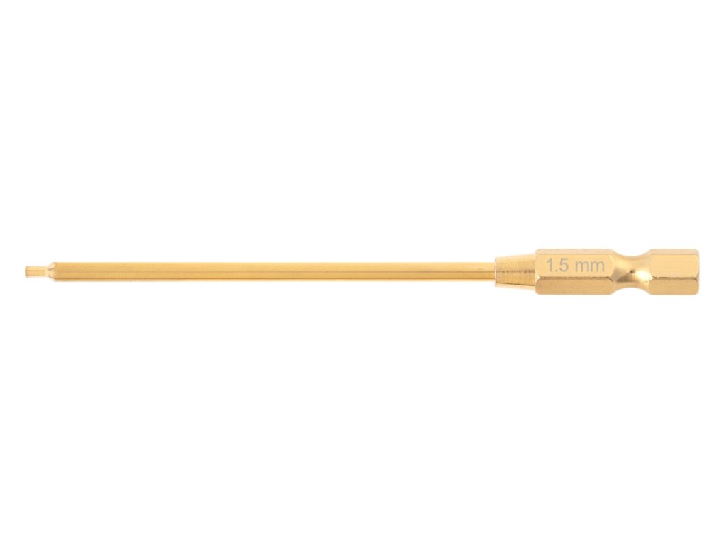 1,5mm imbusový bit s 6,35mm šestihranným adaptérem pro elektrické šroubováky, vyrobený z tvrdé oceli s titanovou povrchovou úpravou.