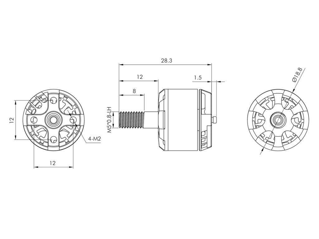 Průměr hřídele (se závitem M5/0,8mm) - 5mm