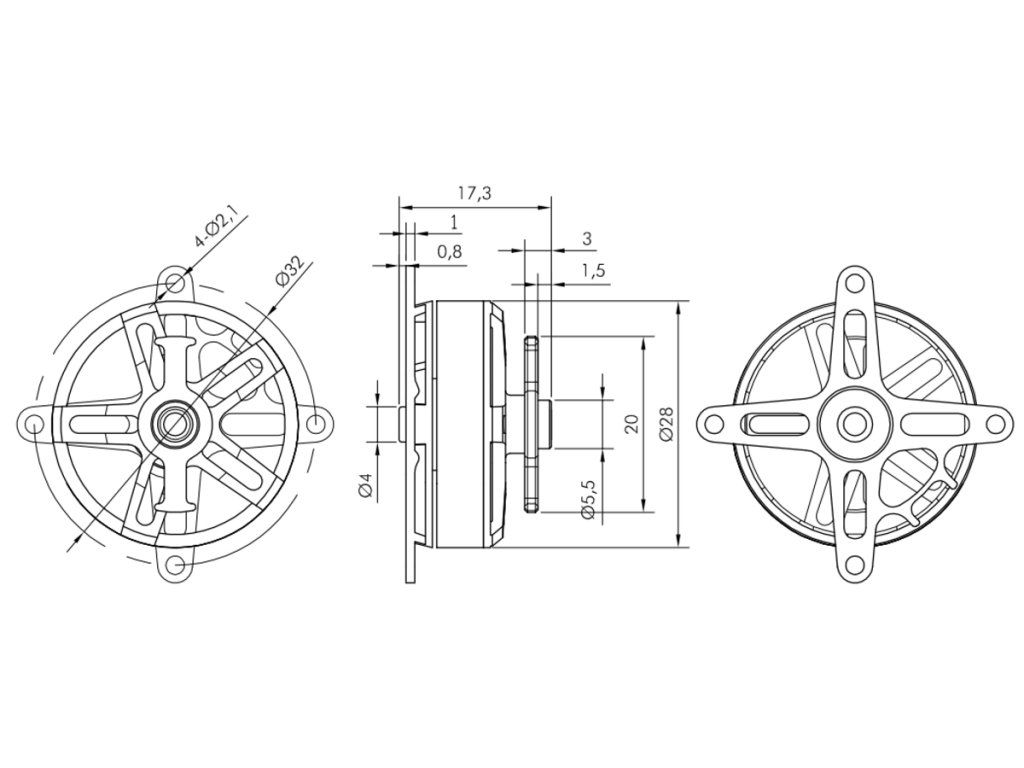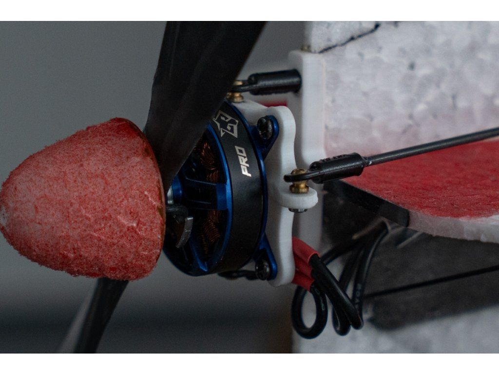 Montáž motoru: KAVAN PRO PRO 2811-1800 je konstruován pro zadní montáž s vrtulí upevněnou pomocí gumičkového unašeče (Ø5,5 mm). Při montáži použijte nejméně dva (protilehlé), nebo čtyři šrouby M2. Motorová přepážka by měla být z 1-1,5 mm letecké překližky. Upevňovací kříž je součástí motoru.
