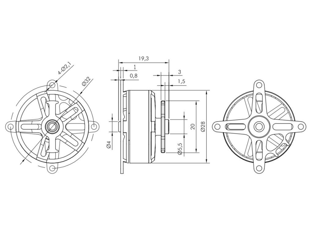 Montáž motoru: KAVAN PRO 2813-1500 je konstruován pro zadní montáž s vrtulí upevněnou pomocí gumičkového unašeče (Ø5,5 mm). Při montáži použijte nejméně dva (protilehlé), nebo čtyři šrouby M2. Motorová přepážka by měla být z 1-1,5 mm letecké překližky. Upevňovací kříž je součástí motoru.