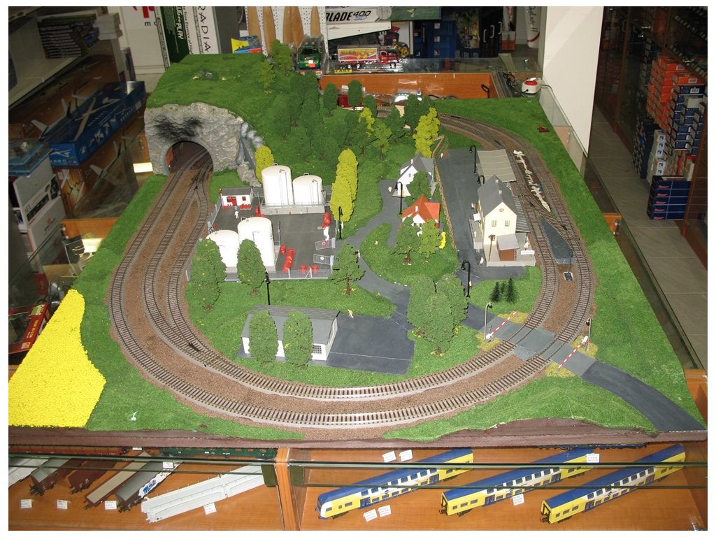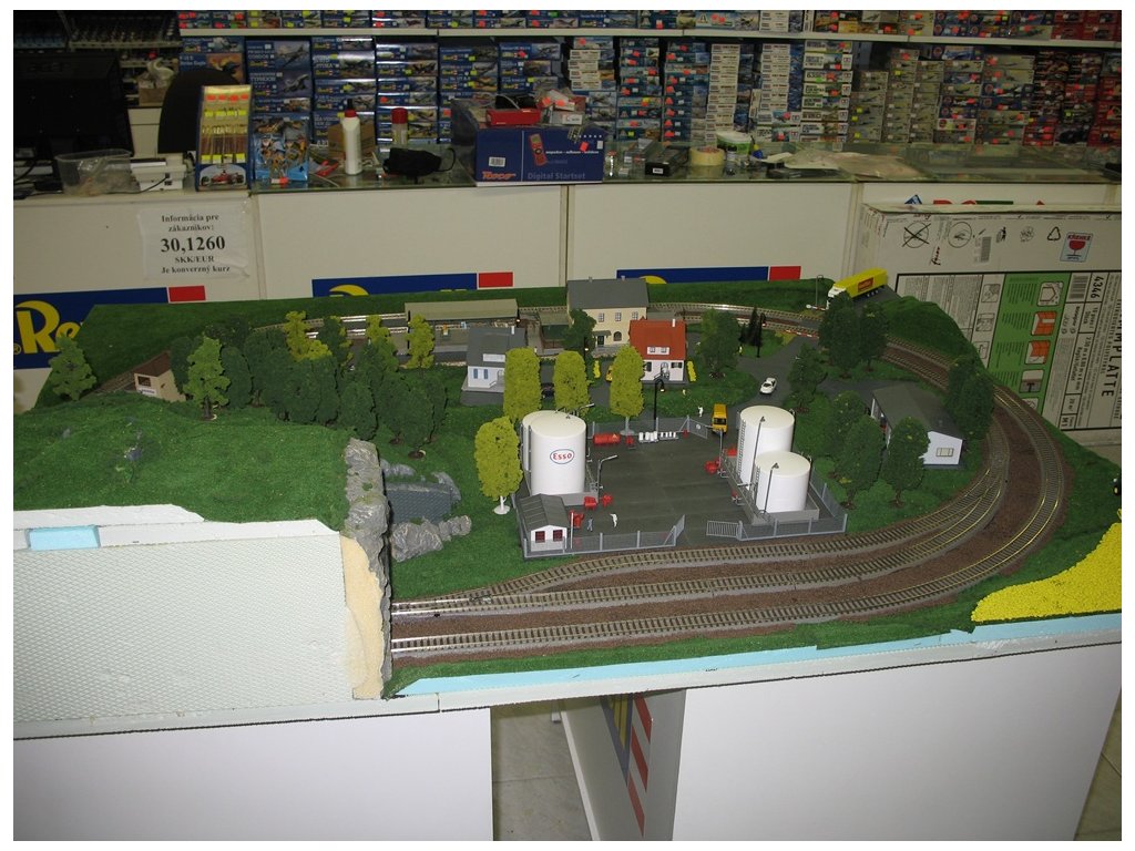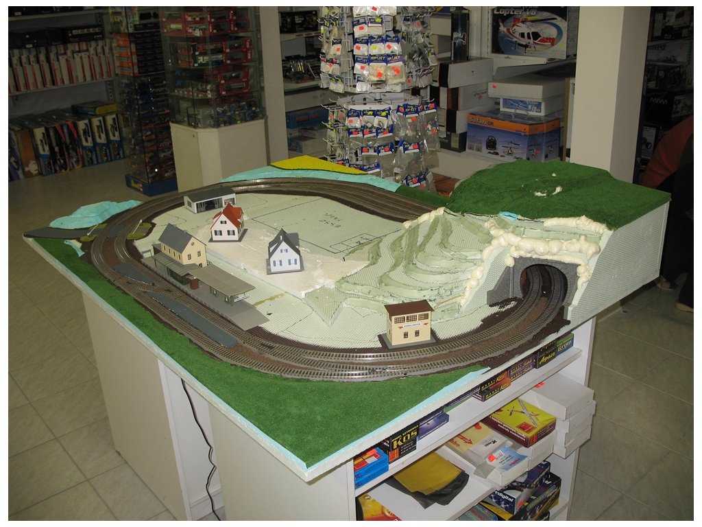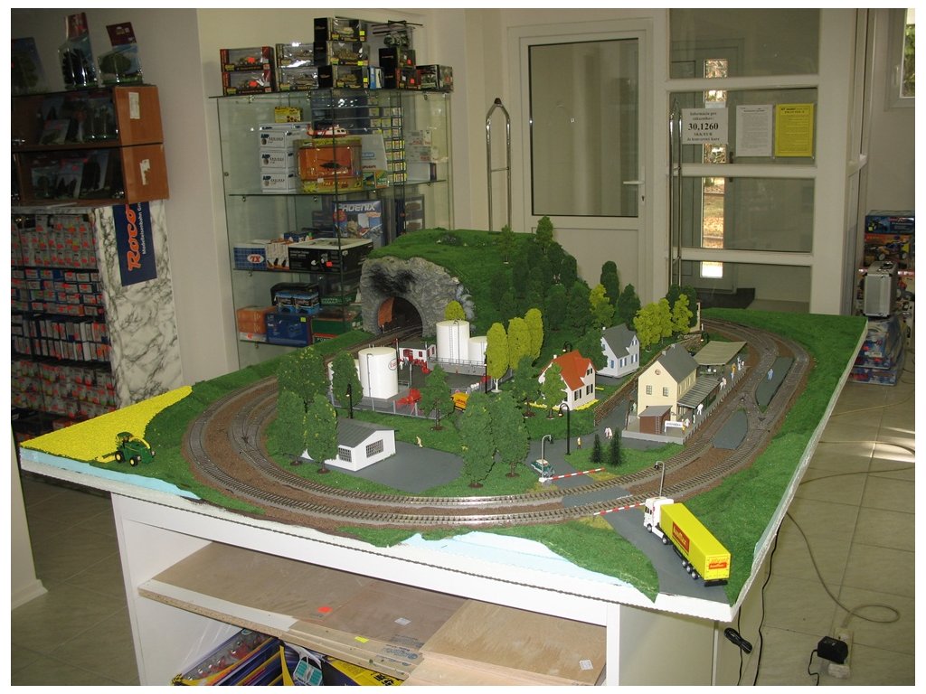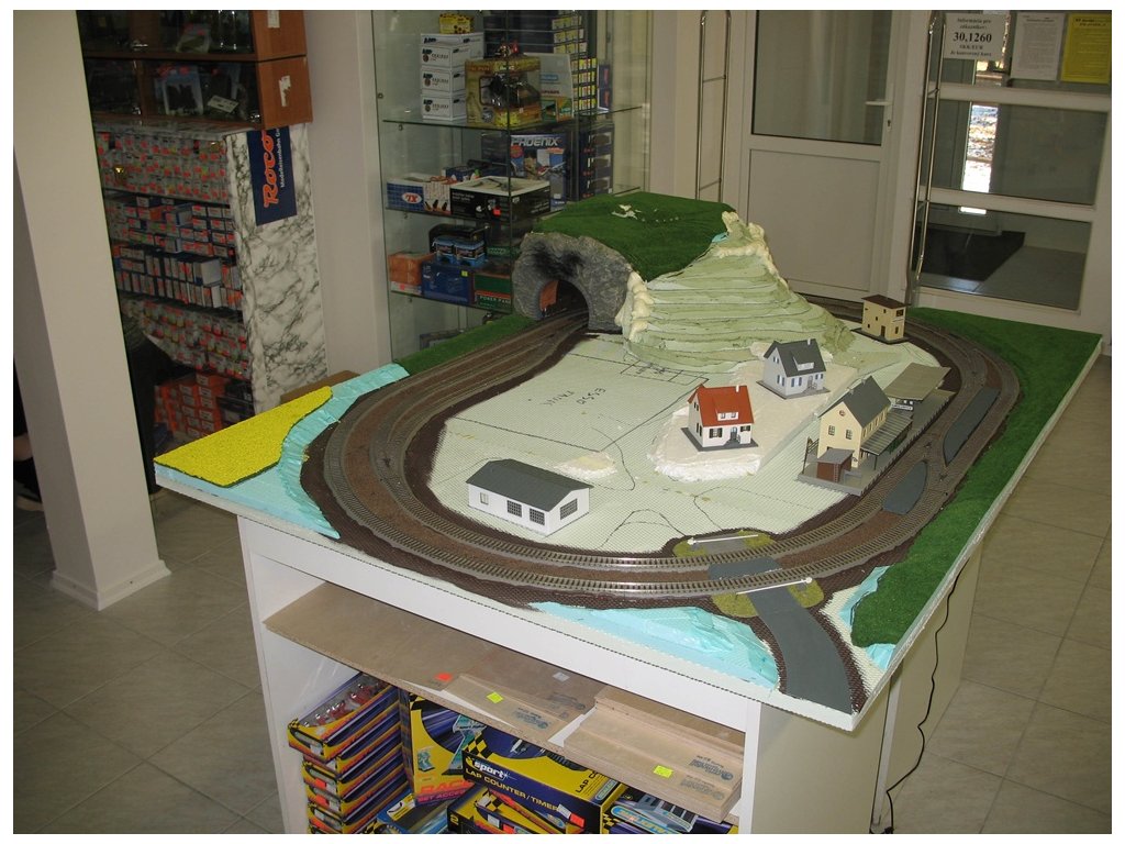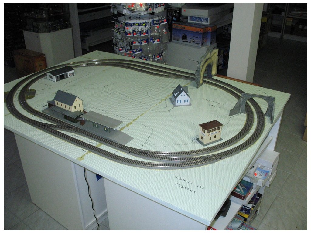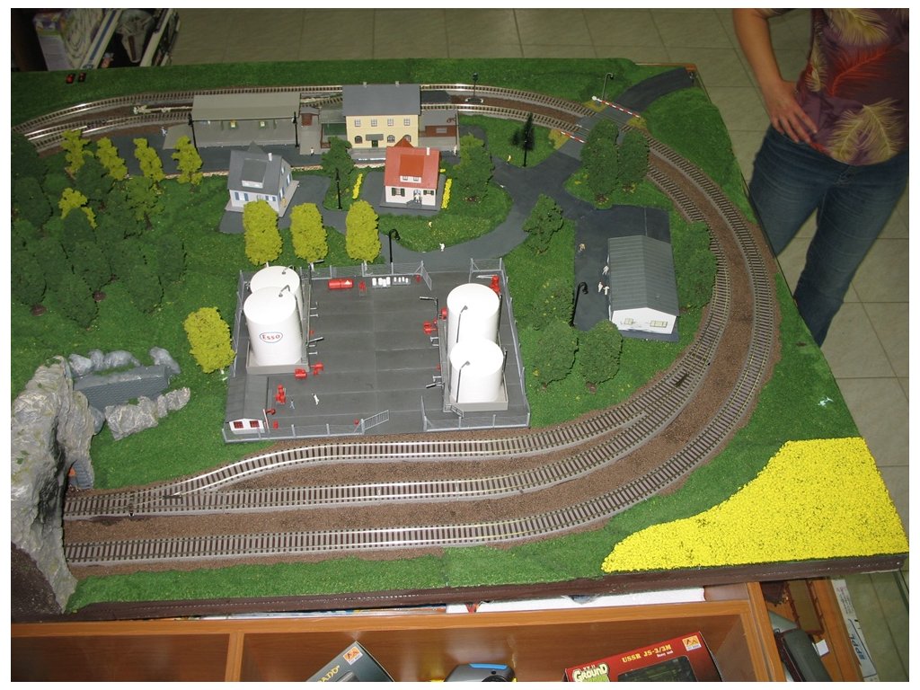 Kolejiště postavené pro malého chlapce na hraní. Rozpočet na projekt byl velmi nízký, ovládání je analogové, osvětlení funkční.