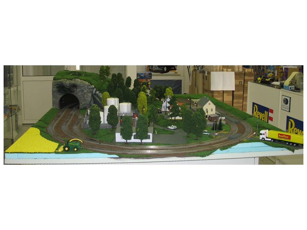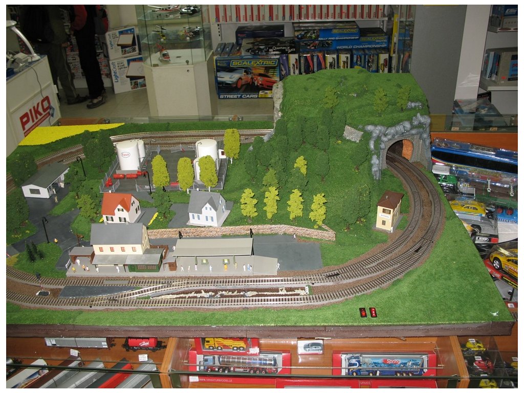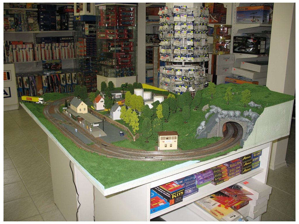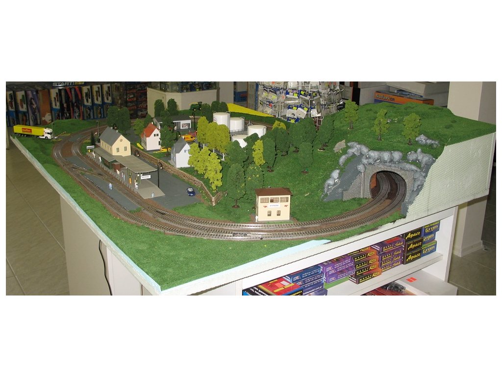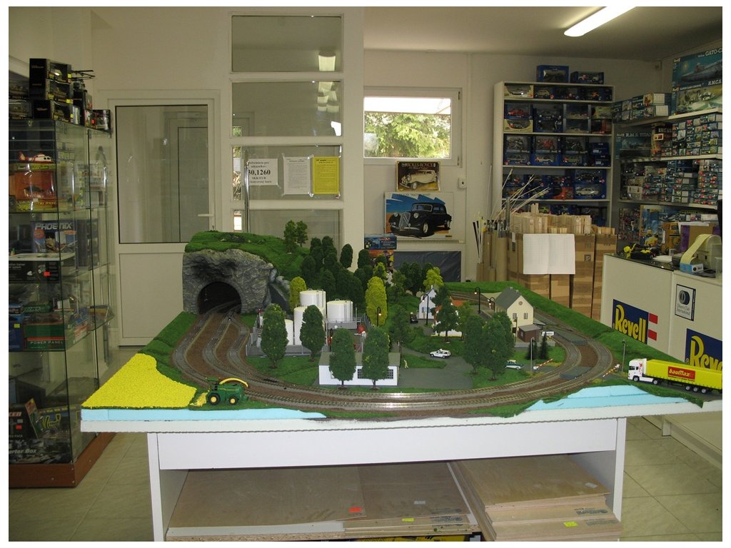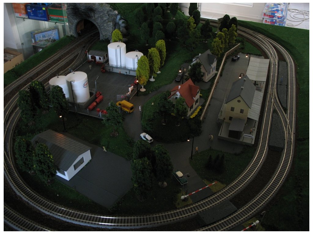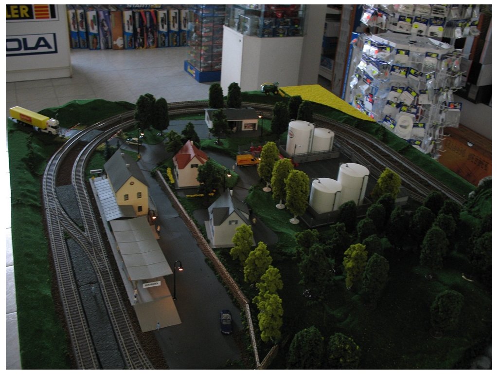 Kolejiště postavené pro malého chlapce na hraní. Rozpočet na projekt byl velmi nízký, ovládání je analogové, osvětlení funkční.