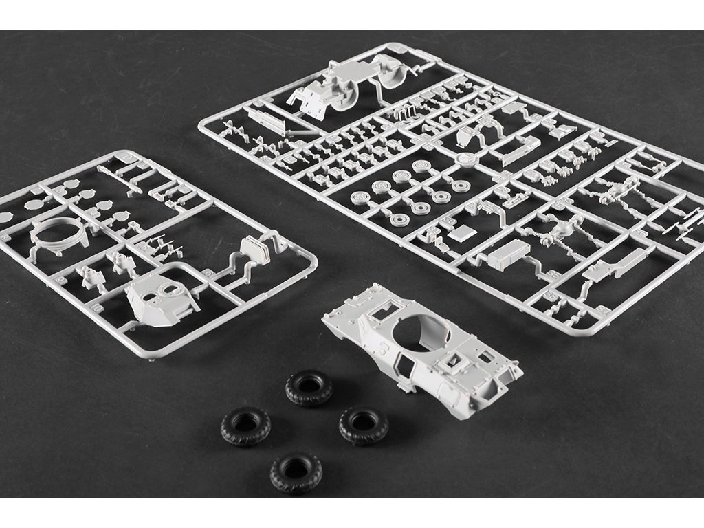 Stavebnice plastikového modelu amerického obrněného bojového vozidla (AFV) s kanónem Cockerill ze 60. let minulého století.