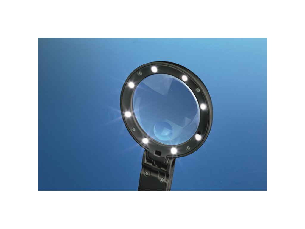 Skládací lupa s LED osvětlením. Ideální pro modeláře, řemeslníky a lidi s omezeným zrakem. Lze použít s nebo bez stojanu.