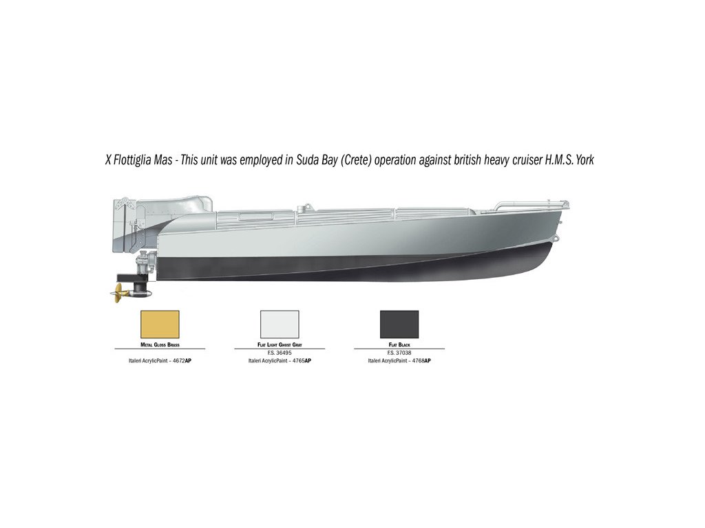 Stavebnica plastového modelu talianskeho útočného člna z obdobia 2. svetovej vojny.