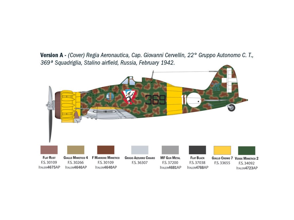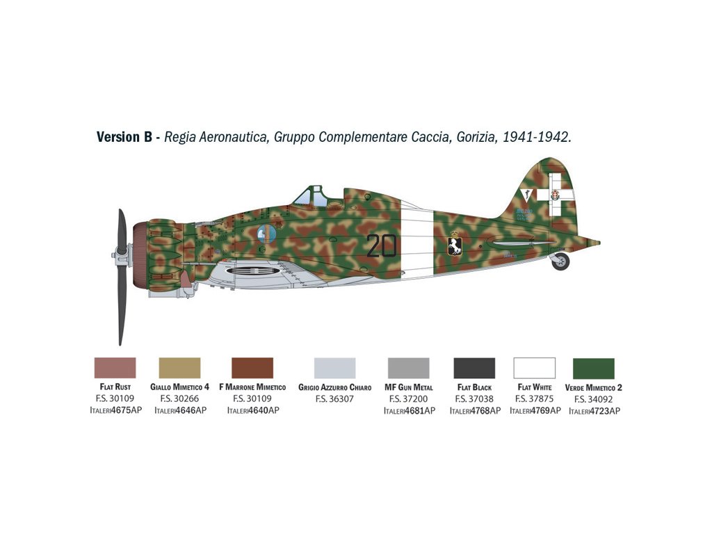 Stavebnice plastového modelu italského námořního stíhacího letadla z období 2. světové války.Super detailní kokpit s 3D nálepkami - Maskovací fólie na kabinu a kola - Jemně detailní motor a prostor kulometů - Detailní podvozek s volitelnými kryty šachet - PE díly pro motor, klapky, kokpit a celkové detaily - Realistické linie panelů a nýty - Pohyblivá křídla a pohyblivá křídla - Super arch nálepek pro 6 verzí - Barevný návod na malování a nálepky.
