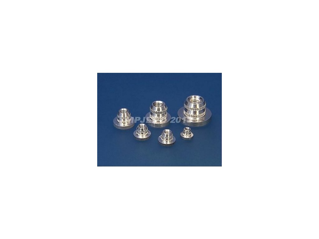Upevňovací matice z hliníkové slitiny, zesílené, montáž lepením. Matice mají zesílenou přírubu a upravený tvar těla pro dosažení vyšší pevnosti spoje.