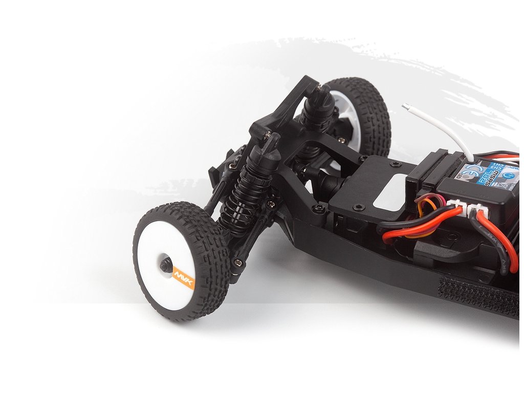 2v1 jednotka regulátoru/přijímače MSRS-702 a stejnosměrný motor MS-030 zajišťují jednoduchost a spolehlivost, zatímco rychle přístupný držák akumulátoru umožňuje rychlé a bezproblémové zastávky v boxech. Kompletně připraveno k provozu s rádiem MTX-702, 7,4V 350mAh LiPo pohonným akumulátorem a USB nabíječem v balení, stačí jen nabít a můžete vyrazit na svůj první závod.