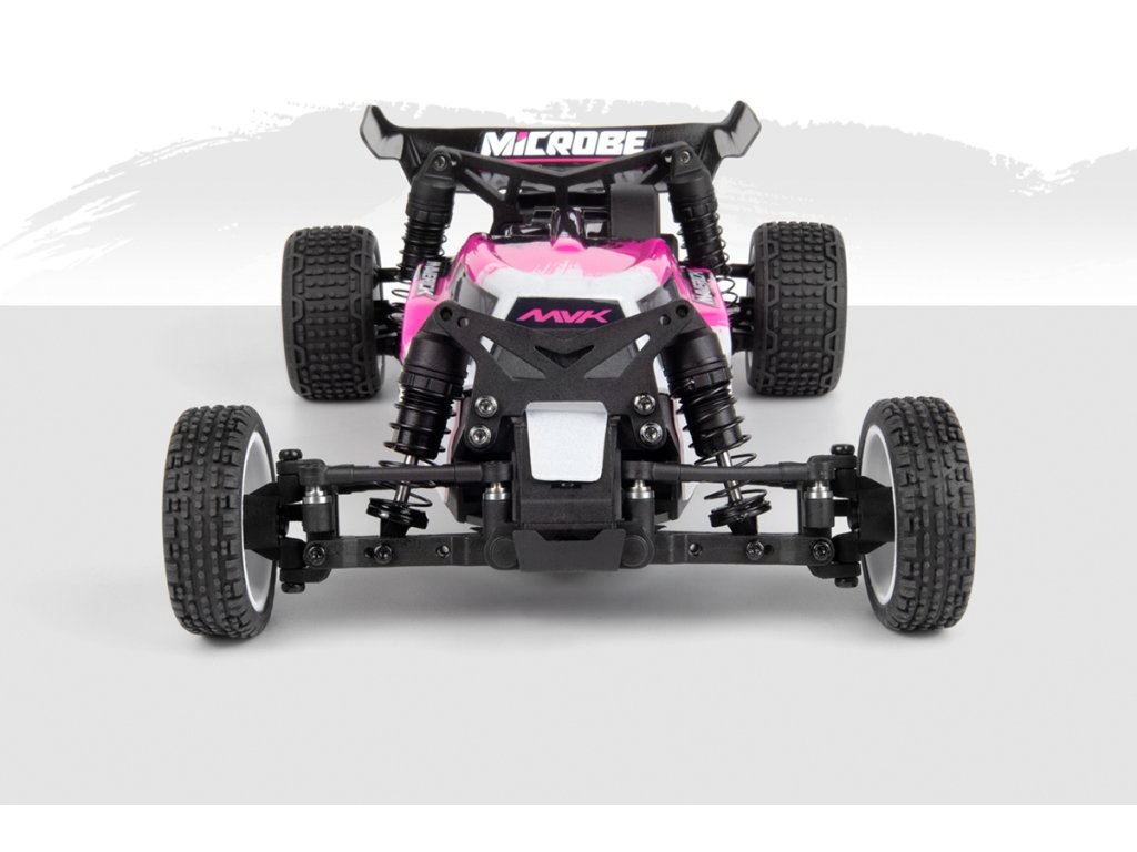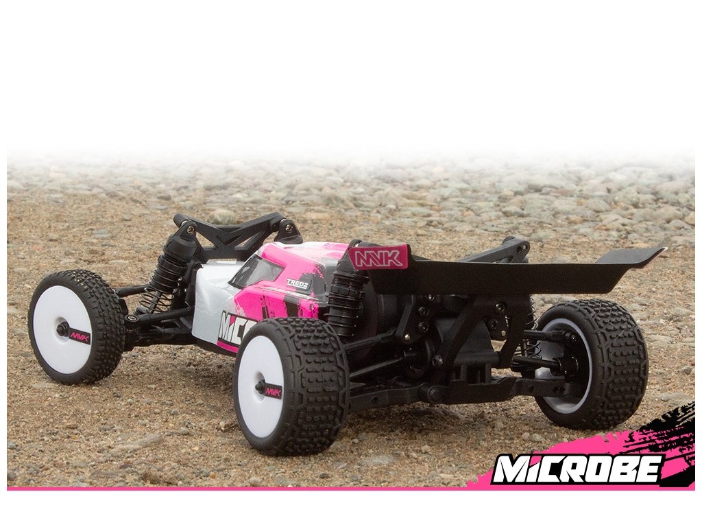 Elegantní 1,5 mm eloxované hliníkové plato podvozku, osazení kuličkovými ložisky a plynulá 3kolová zadní převodovka společně dodávají modelu Microbe stabilní a přesný pocit z jízdy. Přidejte olejové tlumiče a odvětrávaná kola s pěnovými vložkami a získáte malou buggy, která miluje zatáčky, pohlcuje nerovnosti a s jistotou vystřeluje ze zatáček.