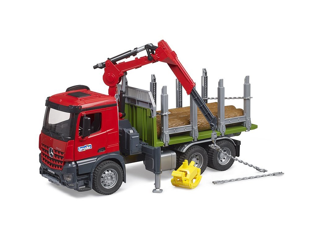 MB Arocs Timber truck w. loading crane, grab, 3 trunks 1/16 Bruder 03669