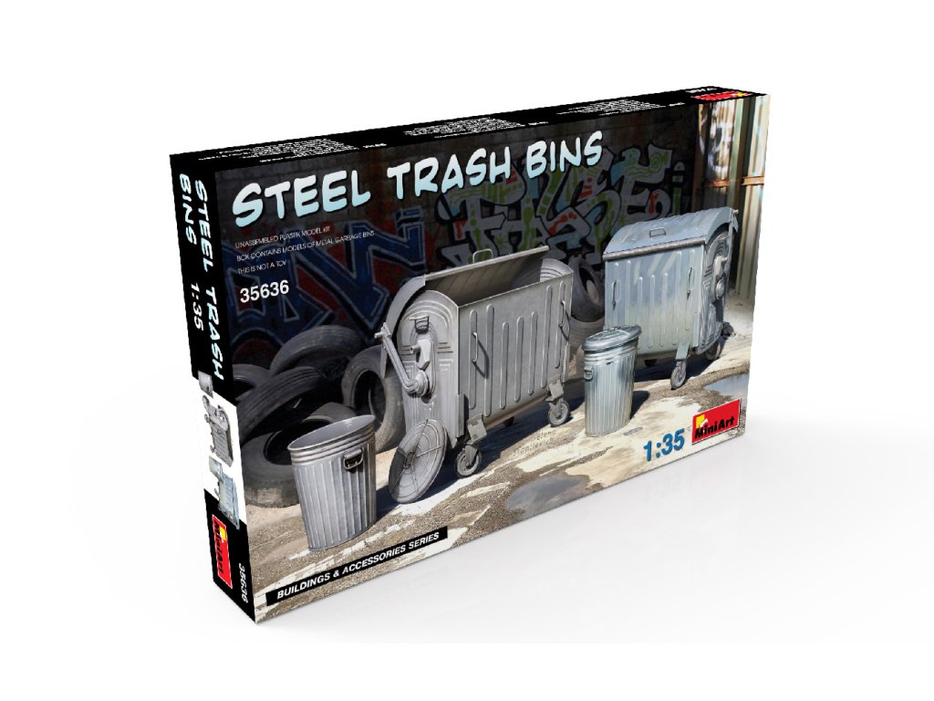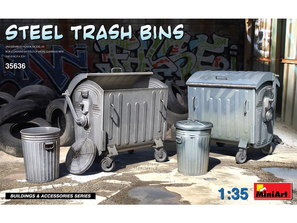 Stavebnice plastikového modelu sady moderních ocelových kontejnerů vhodných do diorámu.