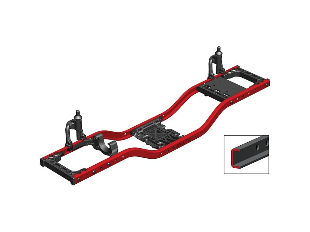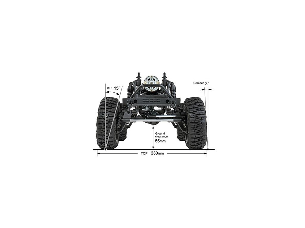Najväčšou výhodou šasi sú portálové nápravy vpredu aj vzadu, s ktorými môžete dosiahnuť ešte väčšiu svetlú výšku. Stabilný oceľový rám z profilu C, planétová prevodovka, kompletný pohon s kovovými ozubenými kolesami, plné osadenie guľôčkovými ložiskami, sú zárukou dlhej životnosti aj pri ťažkom použití v teréne.