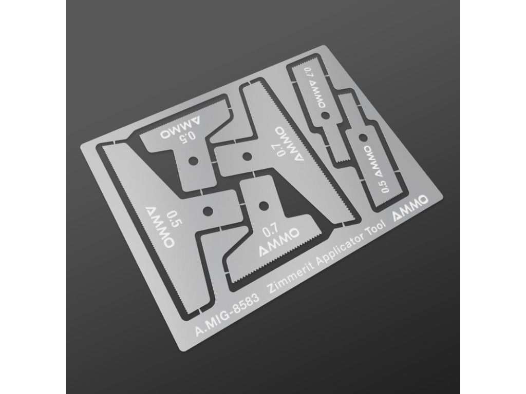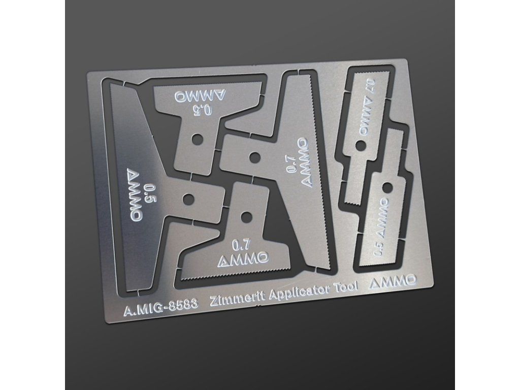 Sada fotoleptaných aplikačních čepelí určených k vytvoření realistické textury Zimmeritu (Během druhé světové války německá armáda nanášela na své tanky vrstvu materiálu, který sloužil k ochraně proti magnetickým protitankovým minám). Zuby každého nástroje jsou rozmístěny podle původně používaných vzorů Zimmeritu. Vyrobeno z kvalitní fotoleptané oceli.