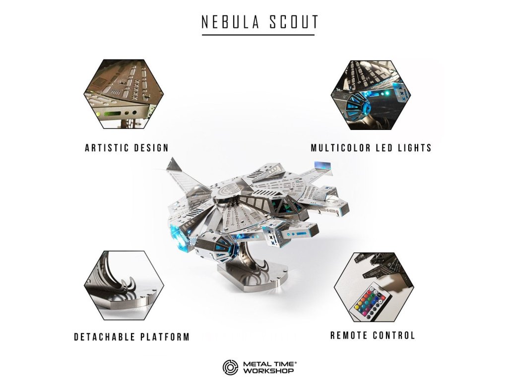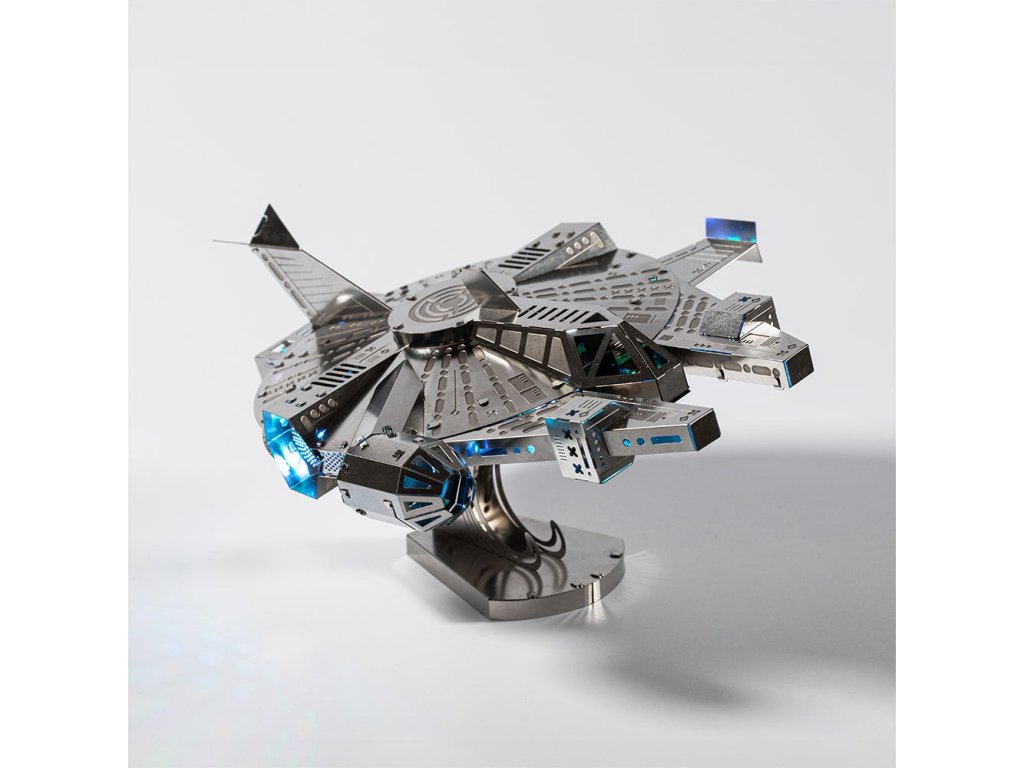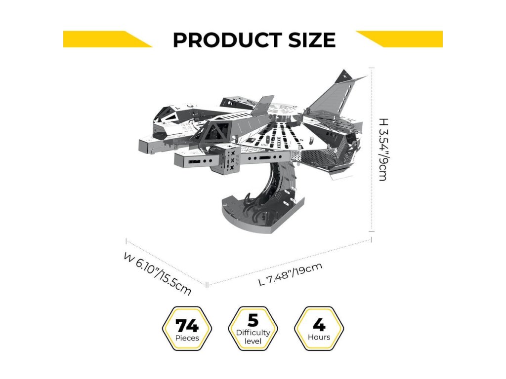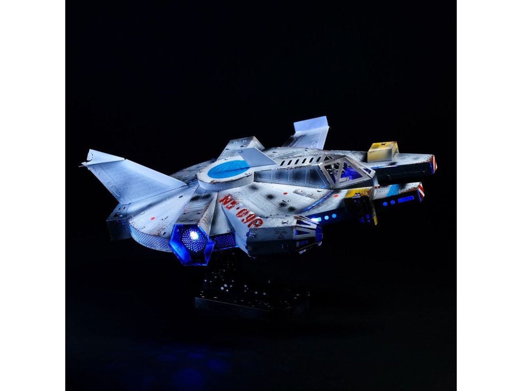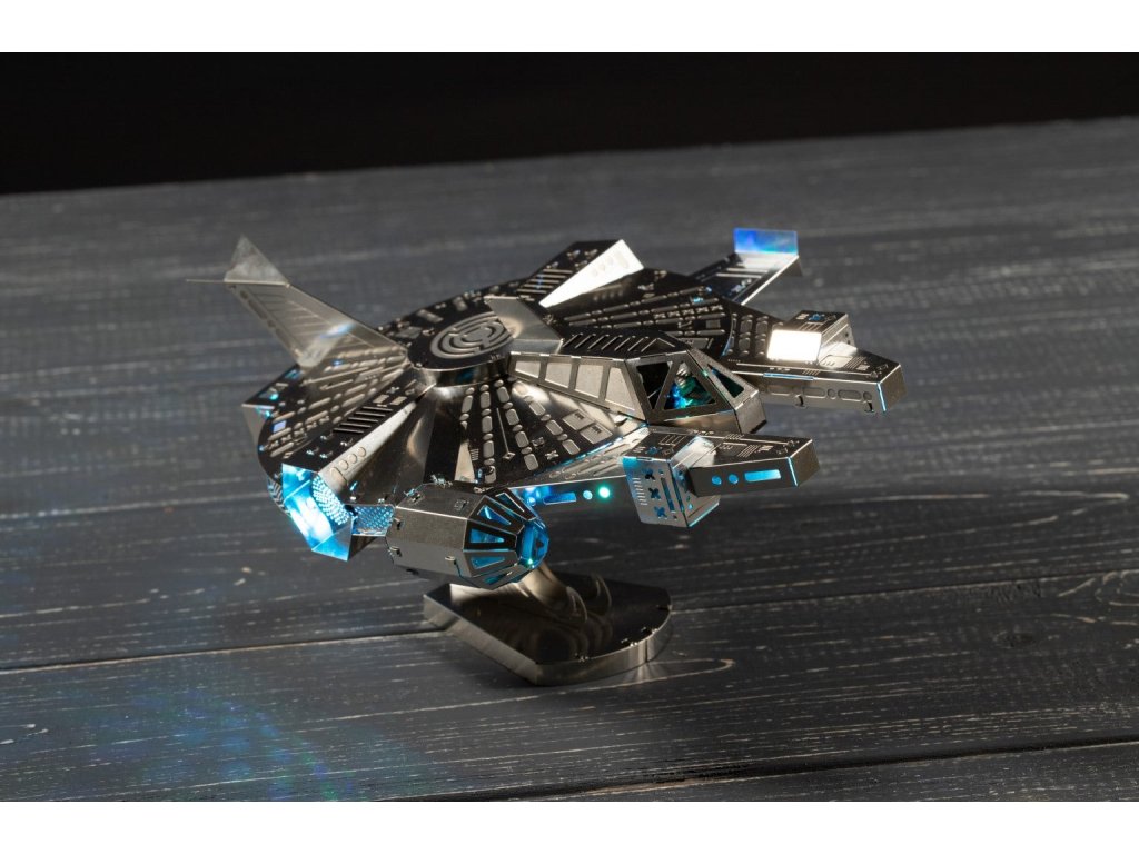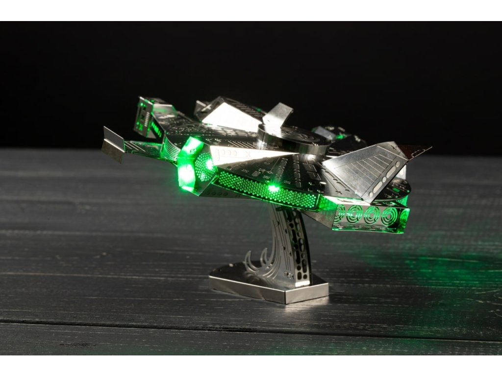 Stavebnice modelu z kovu. Vyrobeno z kvalitního leštěného ocelového plechu laserovým vypalováním a přesným obráběním. Vhodné pro mírně pokročilé a starší děti. Stavebnice obsahuje vyštipovací kleště, pilník, rukavice, čistící hadřík a sběratelské předměty jako odznak a nálepky.