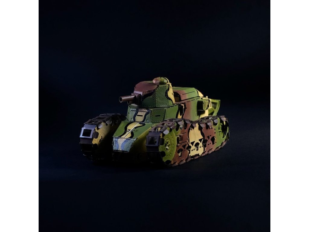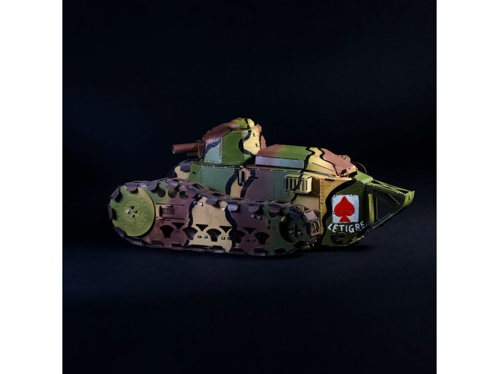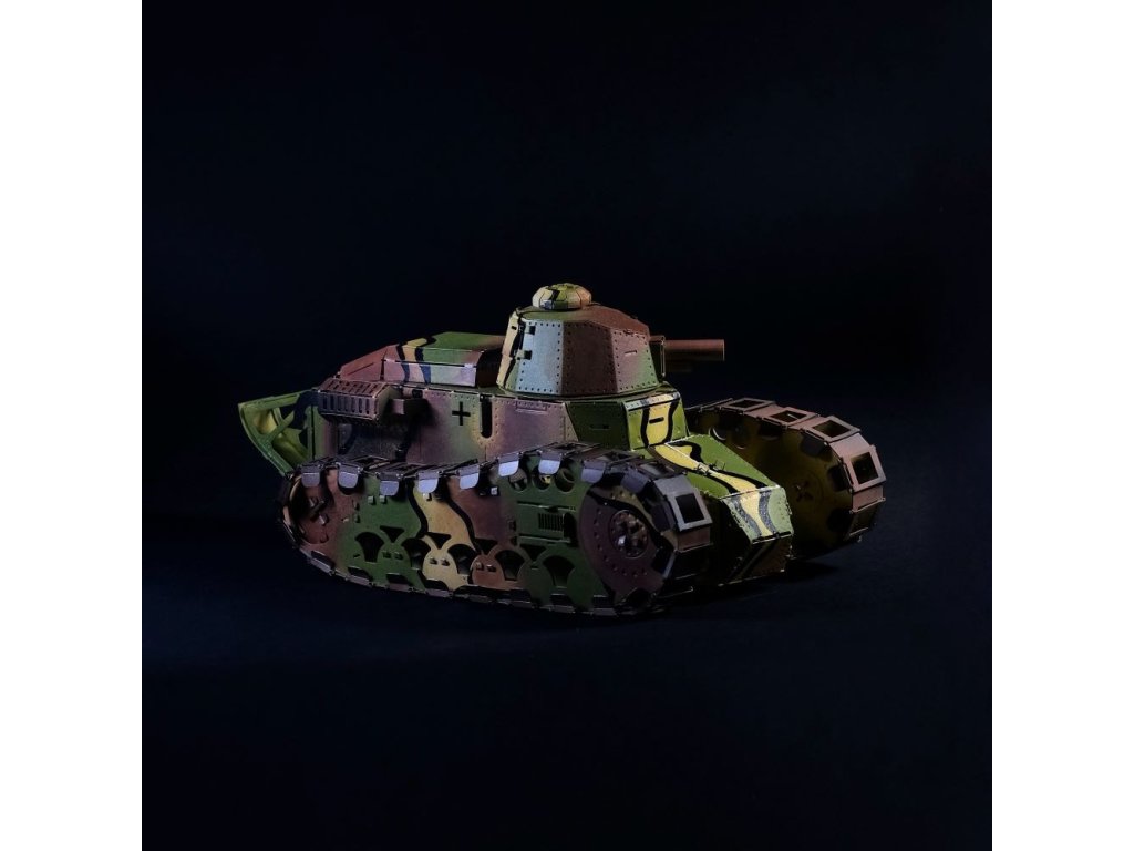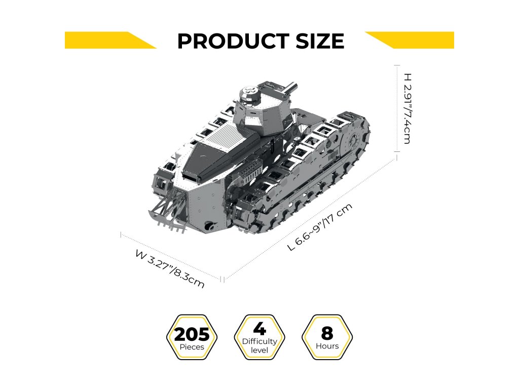 Stavebnice modelu z kovu. Vyrobeno z kvalitního leštěného ocelového plechu laserovým vypalováním a přesným obráběním. Vhodné pro mírně pokročilé a starší děti. Stavebnice obsahuje vyštipovací kleště, pilník, rukavice, čistící hadřík a sběratelské předměty jako odznak a nálepky.