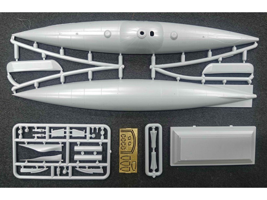 Stavebnice plastikového modelu experimentální ponorky se sudým pohonem z 80. let 19. století.